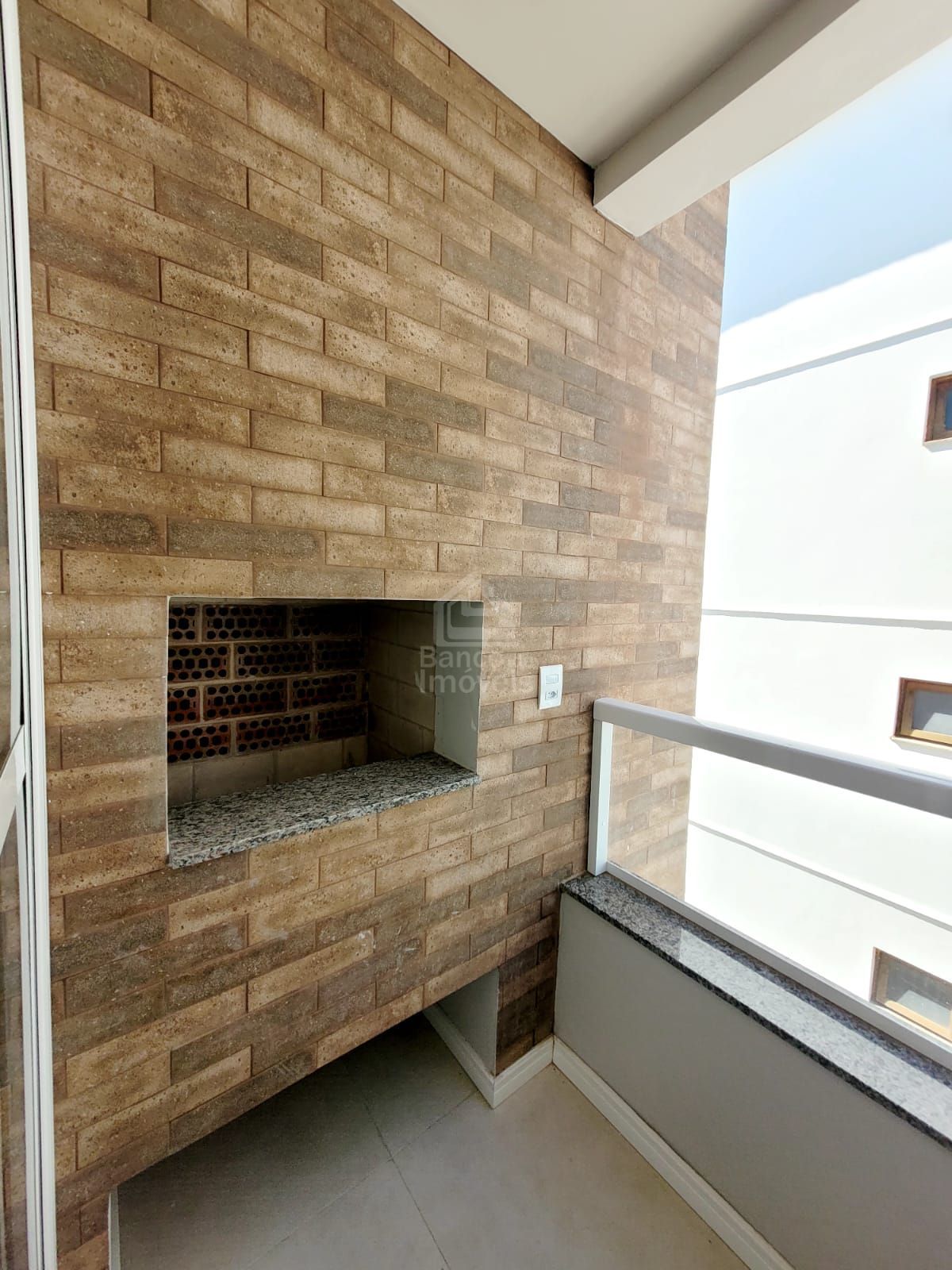 Apartamento possui sacada com churrasqueira.