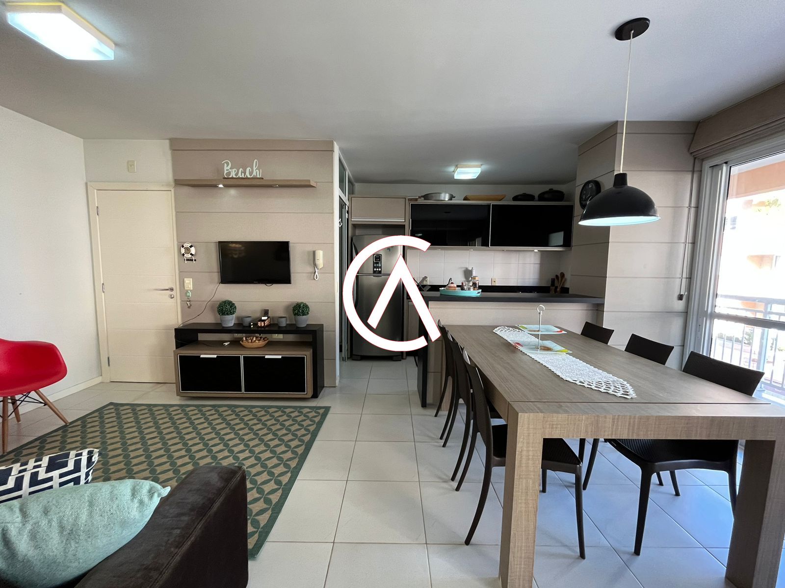 - Ambiente social integrado de estar/jantar, com mesa para 6 pessoas