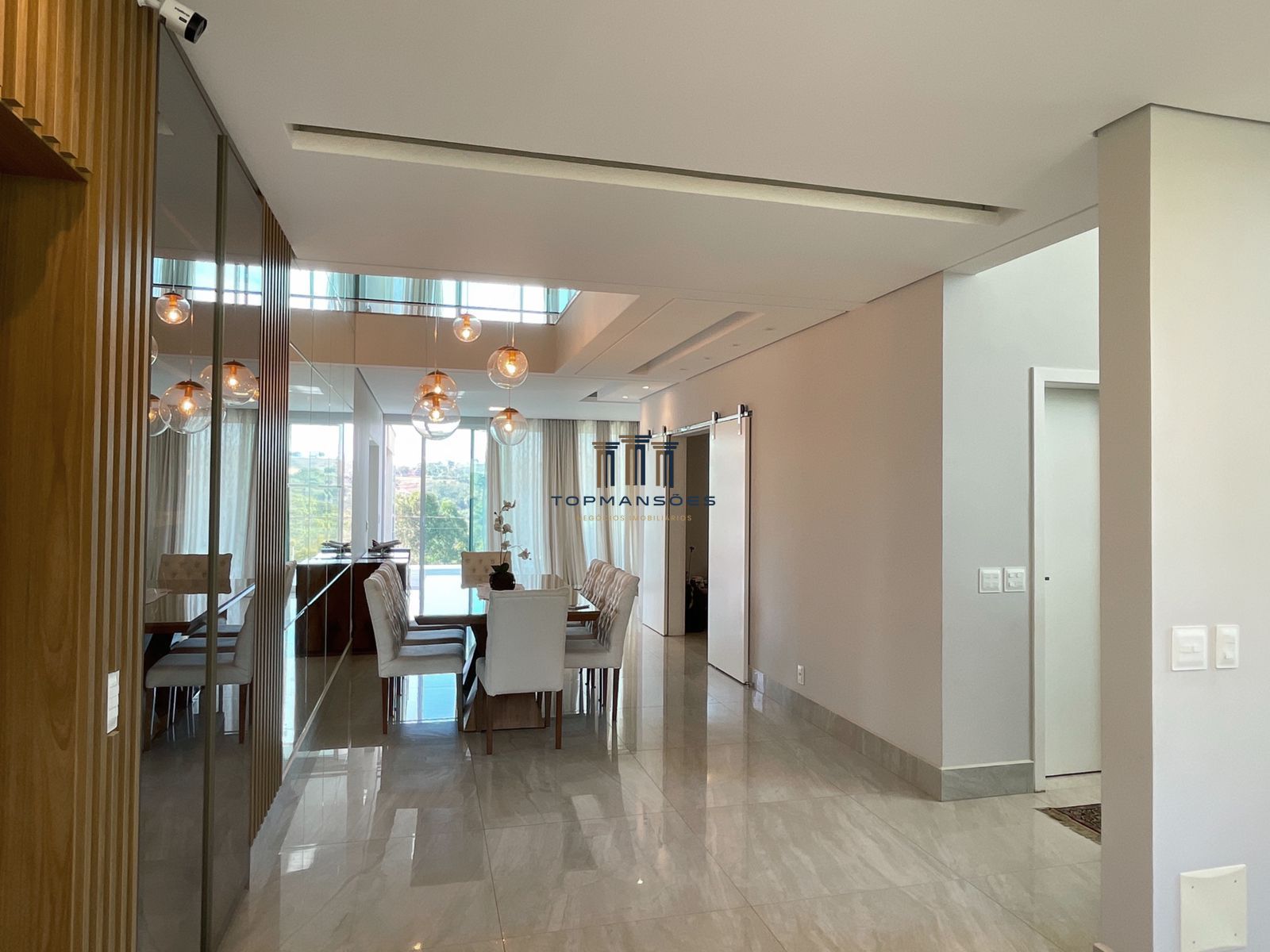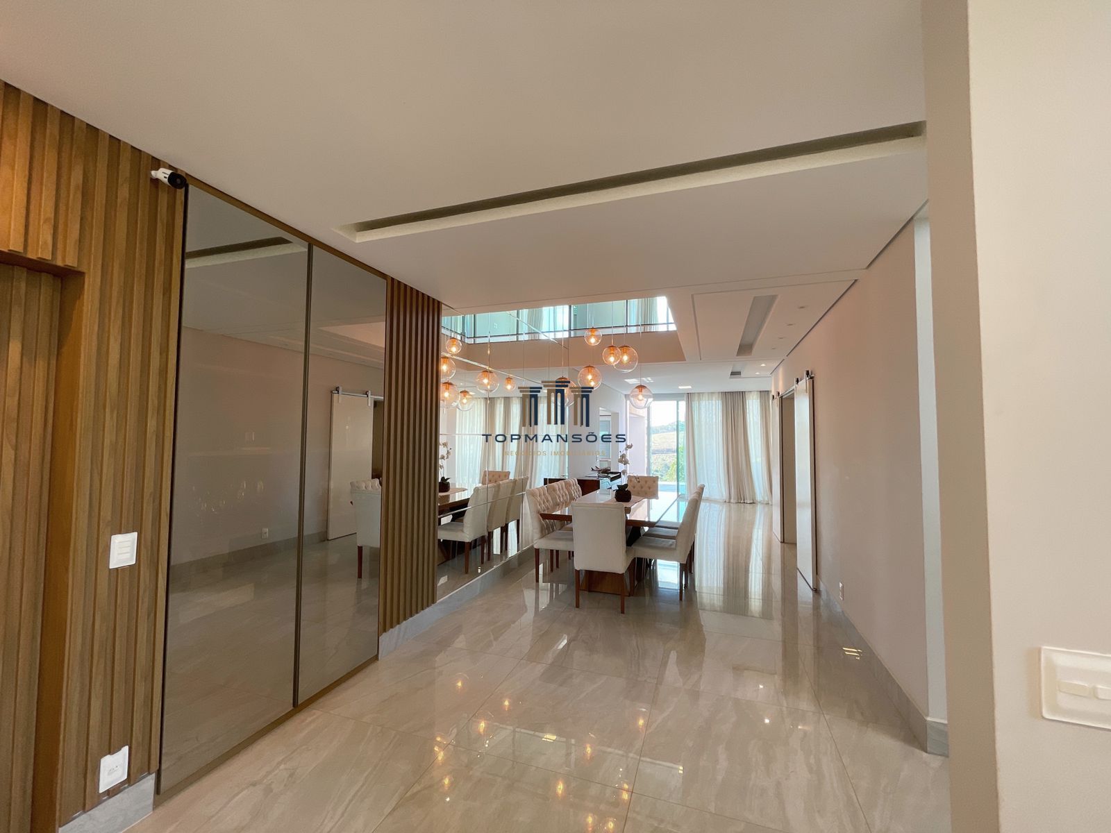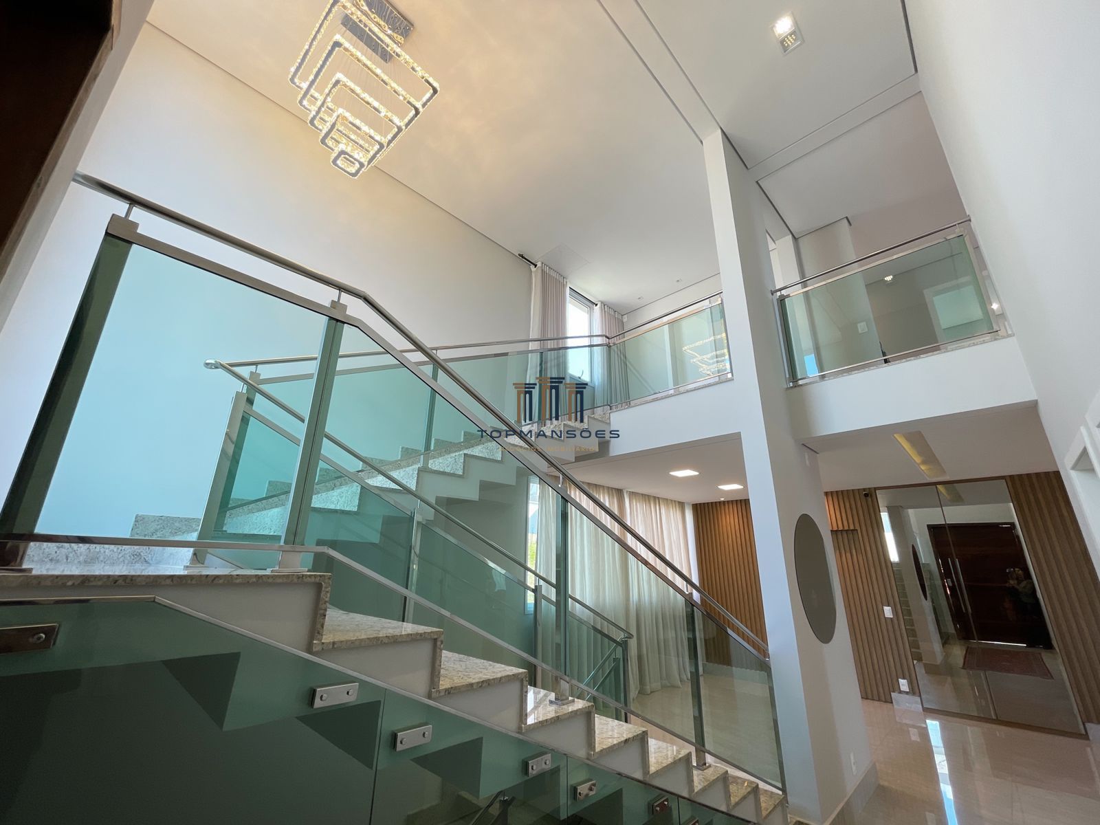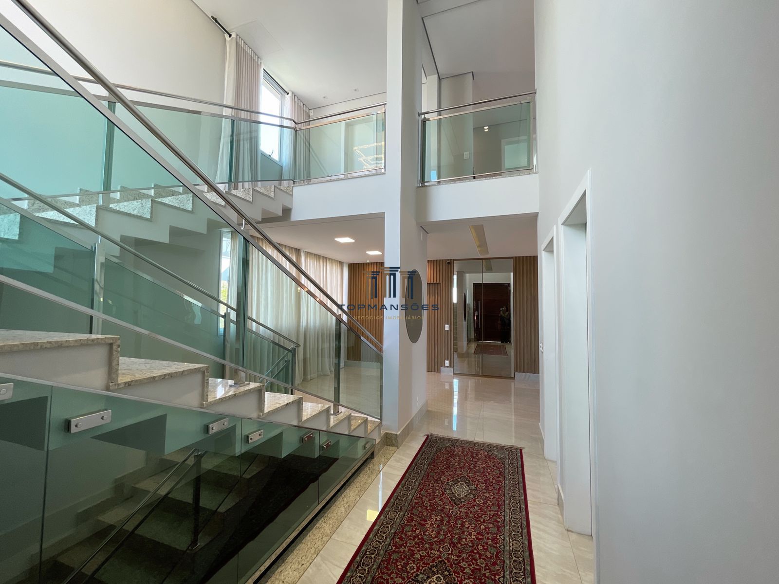 529M2 de área construída, 9 banheiros, 4 suítes, todas com closet, piso de madeira e varandas com amplas portas e persianas automatizadas.