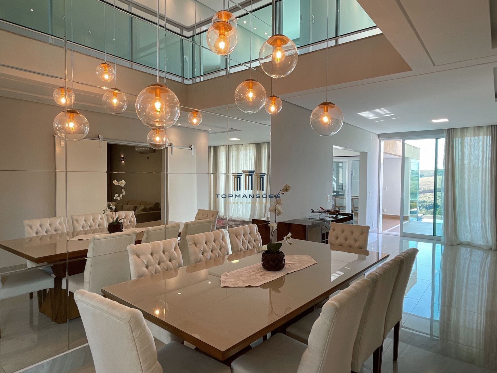 Belíssima casa, Exclusiva, com alto padrão de acabamento, sob medida para quem busca conforto e sofisticação. 529M2 de área construída, 9 banheiros, 4 suítes, todas com closet, piso de madeira e varandas com amplas portas e persianas automatizadas. Ampla Sala de 2 ambientes, pé direito dulpo, integrada com deck da piscina mais sala de TV. Primeiro Pavimento (térreo): Suíte, escritório, lavabo, dependência de empregada com banheiro, cozinha planejada, dispensa e área de serviço. Segundo Pavimento: Cozinha de inverno, Sala íntima, Rouparia e 3 das suítes. Garagem coberta no subsolo para 9 carros com portão automático e circuito interno de TV; Salão de Festas com banheiro integrado, oficina para pequenos reparos e quarto para depósito. Ar- Condicionado em todos os ambientes, vista definitiva; Lazer completo: piscina de borda infinita, cascata, Sauna (acesso pelo piscina); Área Gourmet com Churrasqueira, Forno de Pizza, Banheiro de apoio e jardim de inverno. Energia Fotovoltáica, armazenamento de água de chuva no subsolo para até 18 mil litros com bombas para irrigar os jardim, pomar e horta, além dos andares superiores casa haja necessidade.