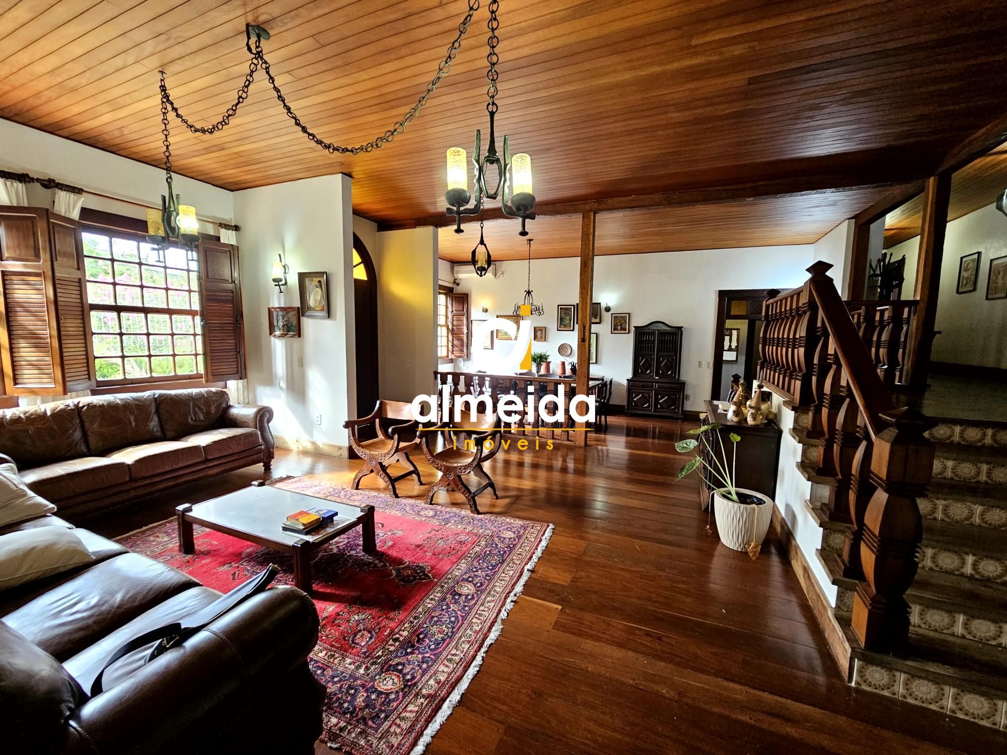 Comodidades:Ar condicionado, Salão de festas, Varanda, Reservatório de água, Entrada lateral, Dep. empregada, Cozinha, Churrasqueira, Canil, Banheira hidromassagem, Área de serviço, Adega, Banheiro auxiliar, De esquina, Despensa, Escada, Estar social, Jardim, Lavanderia, Muro, Piscina, Portão eletrônico, Sala de estar, Sacada, Pátio, Lareira, Escritório, Closet, Banheiro social, Copa, Lavabo, Horta, Árvores frutíferas, Hall de entrada, Interfone, Pé direito elevado, Pomar, Sala de almoço, Pet friendly, Armário cozinha, Luminárias, Vídeo monitoramento, Armário embutido, Edícula, Janela grande, Mezanino, Quintal, Sala de jantar, Vista panorâmica.