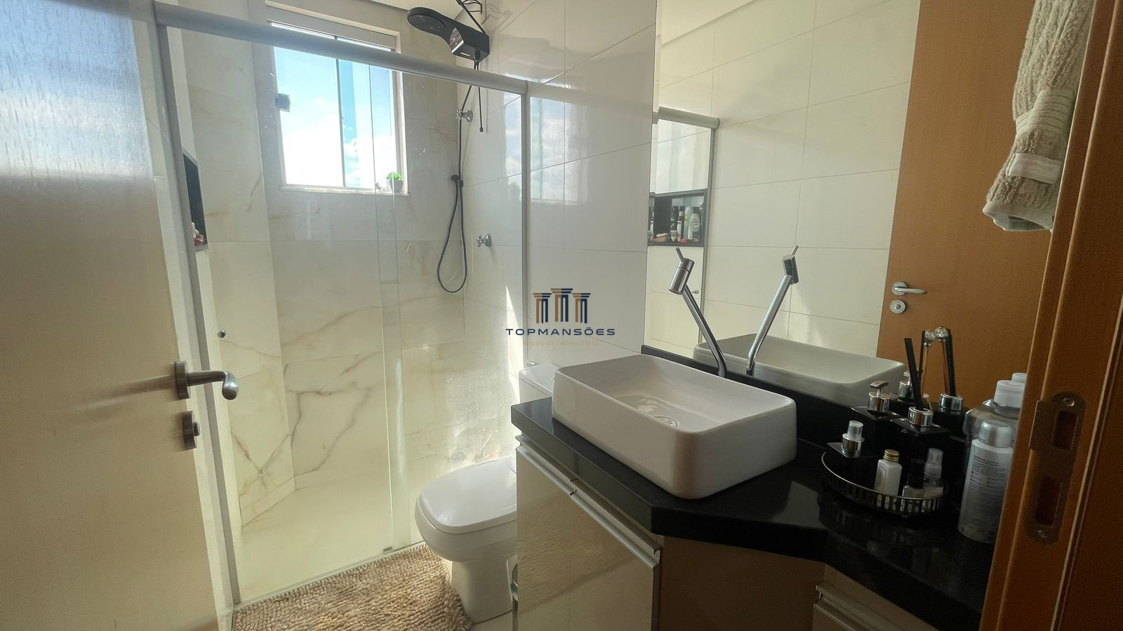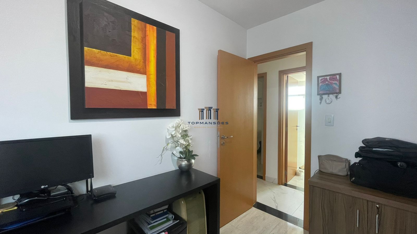 O apartamento apartamento tem três quartos, sendo uma suite, cozinha com bancada estilo americana com armários, conjugada com sala de jantar e banheiro social, no primeiro pavimento.