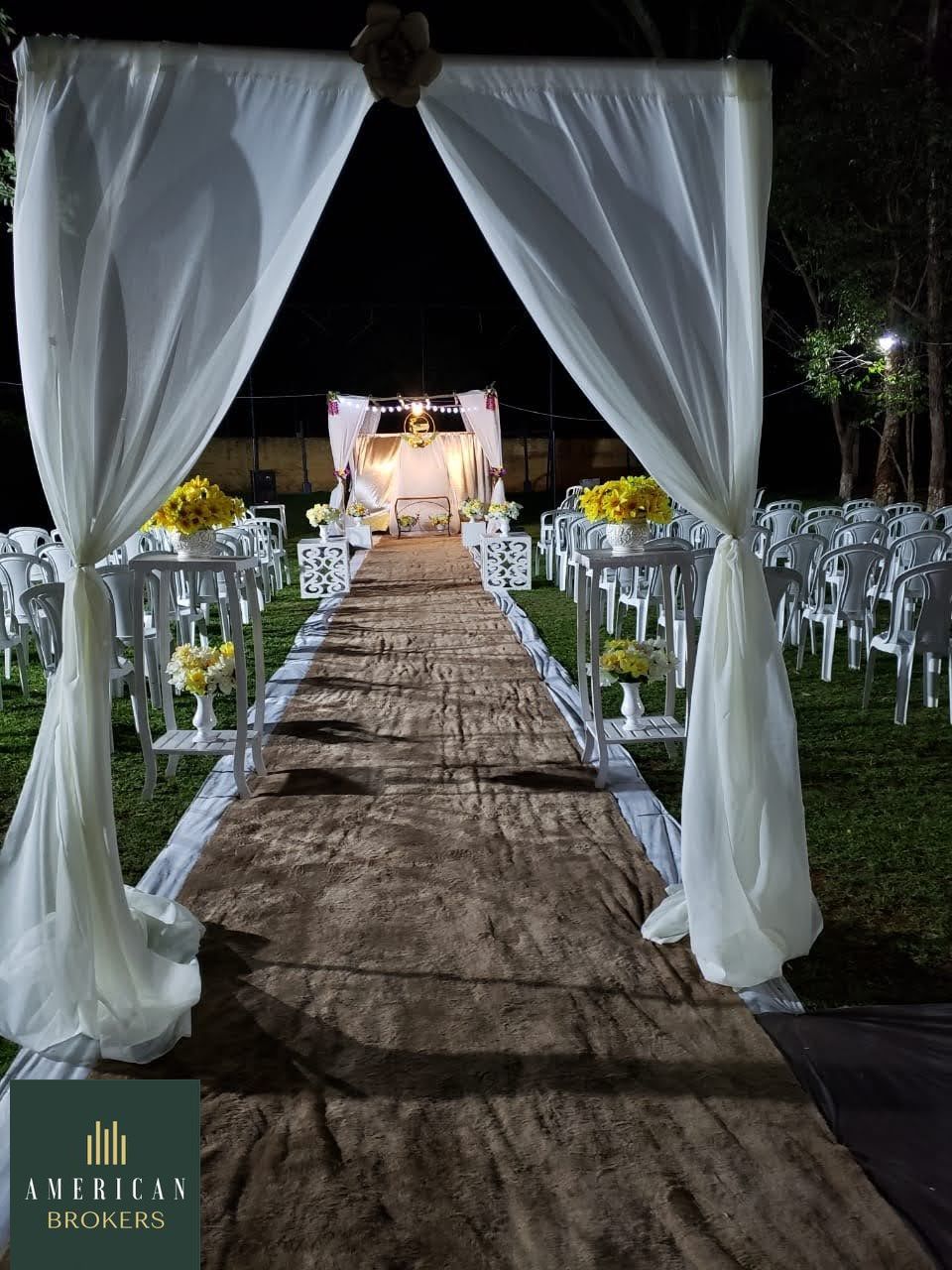 Descrição e Utensílios do Espaço O espaço é fechado de muros. Estacionamento p/ 50 carros. 08 suites p/ casais 01 qto solt. c/ 04 camas 01 qto solt. c/ 14 camas 01 qto solt.c/ 32 camas 01 Salão de oração c/ cadeiras 01 campo futebol 850 mt Churrasqueira 01 Quiosque c/ churrasqueira a carvão 01 Tabua p/ carne 10 Espetos 01 Salão de festas fechado c/03 banheiros Mesas e cadeiras p/ 100 pessoas. 01 Climatizador 01 Wi-Fi 01 Bebedouro d’ água ( elétrico) 02 Fogões Industriais 02 Frizeses 02 Geladeiras 01 Forno Gas e Elétrico Piscina 01 piscina adulto aquecida, com Leds 01 Piscina infantil 01 mesa sinuca 01 mesa. 01 pimbolim