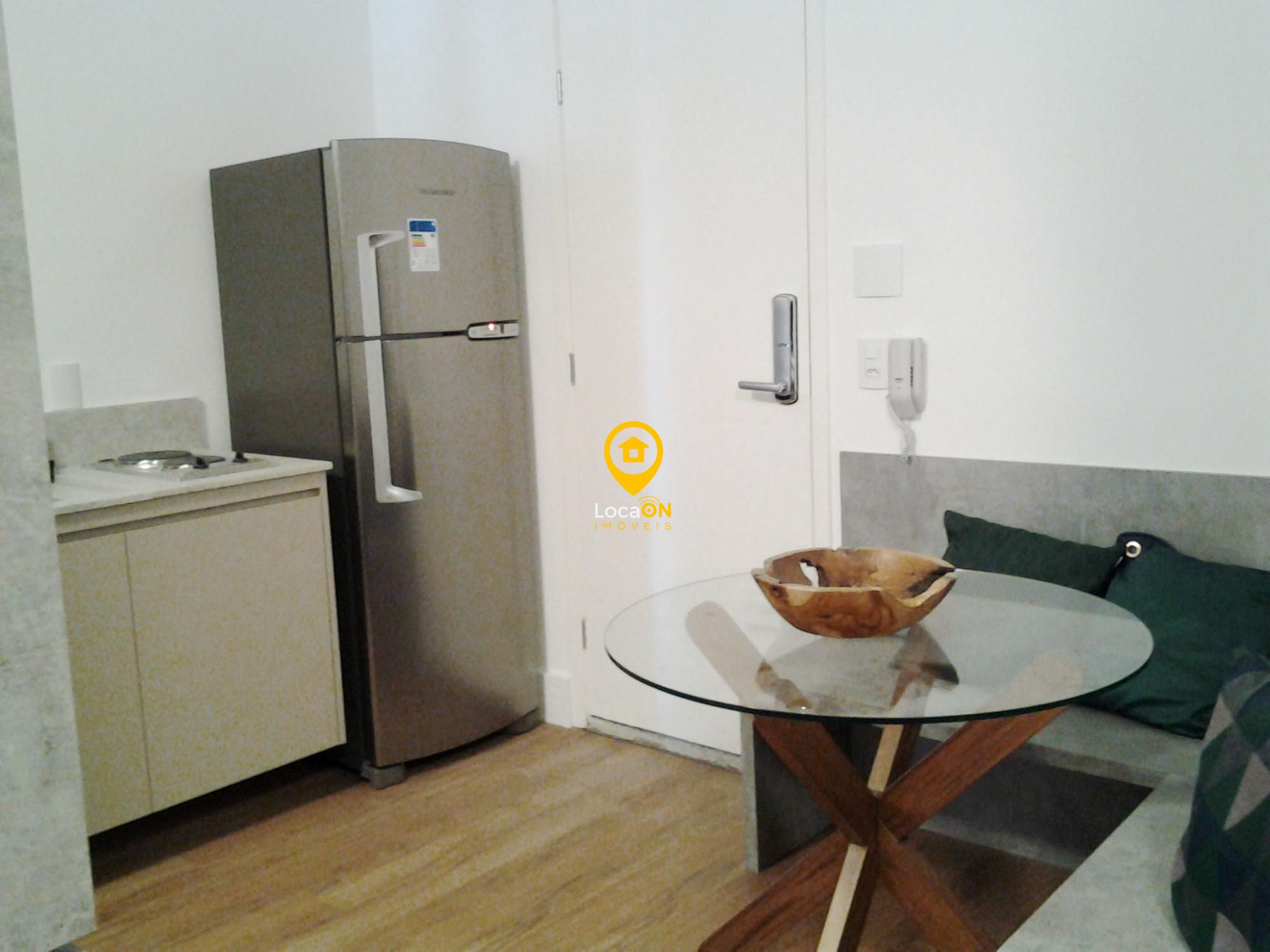 Apartamento para alugar com 1 dormitorio, 1 vaga de garagem, completo em mobilia.