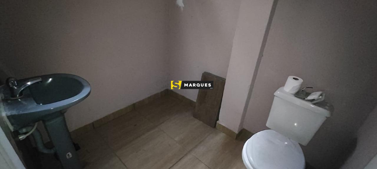 A sala também é equipada com dois banheiros, atendendo confortavelmente funcionários e clientes.