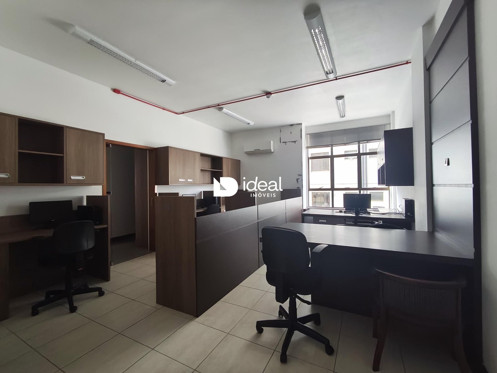 Conjunto de duas salas comerciais para locação no Edifício Comercial Antofagasta, em excelente localização no Bairro Nossa Senhora das Dores, em Santa Maria. Com 93,04 m² de área privativa e 140,20 m² de área total, o espaço conta com três ambientes bem distribuídos, dois banheiros e duas vagas de garagem. O imóvel já está mobiliado, o que proporciona mais praticidade para empresas que desejam se instalar com agilidade. É um ambiente iluminado e agradável para o dia a dia profissional. Além disso, oferece excelente infraestrutura: Acessibilidade para PCD Ar-condicionado Elevador Recepção com interfone Estacionamento Sistema de vídeo monitoramento Ideal para escritórios, consultórios, clínicas ou outras atividades comerciais que buscam conforto, visibilidade e funcionalidade. Agende uma visita e conheça este excelente espaço para impulsionar seu negócio!