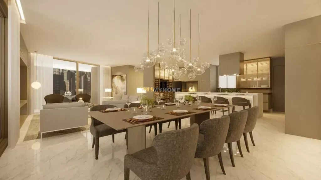Apartamento com 3 suítes; Mobiliado; Área privativa de 239m²; Cozinha em conceito aberto, sala de jantar e estar, Churrasqueira, sacada com vista maravilhosa e área de serviço. A área técnica fica fora do apartamento, ou seja, caso necessite de manutenção, nenhum prestador irá acessar o apartamento.