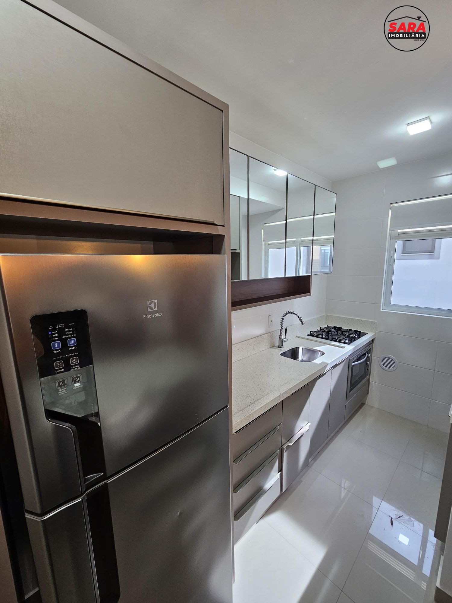 Além disso, o apartamento conta com 2 vagas de garagem, fechadura digital, gás individual, sacada, área de serviço, cozinha com móveis planejados, armários embutidos, elevador, churrasqueira, sala de estar e jantar, móveis planejados, internet, acessibilidade para PCD, lavanderia, hidrômetro individual, espera para split e interfone.