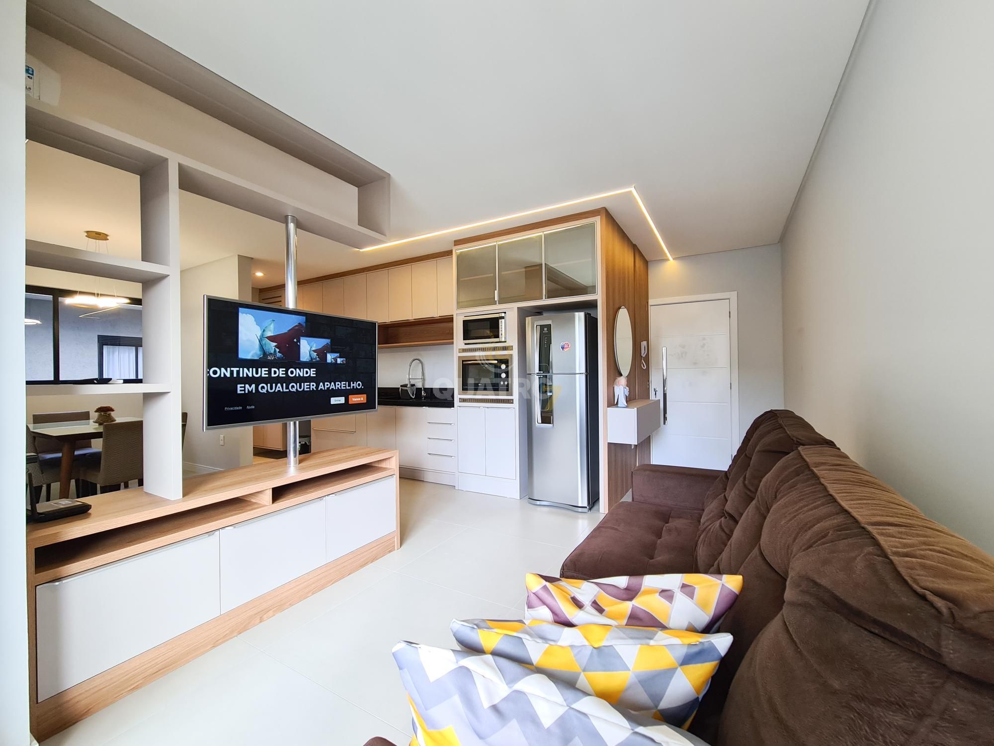 O apartamento em andar alto, possui sacada com churrasqueira, sala de estar, jantar e cozinha em ambientes integrados, 01 suíte e 01 dormitório, banheiro social e pronto para mobiliar.
