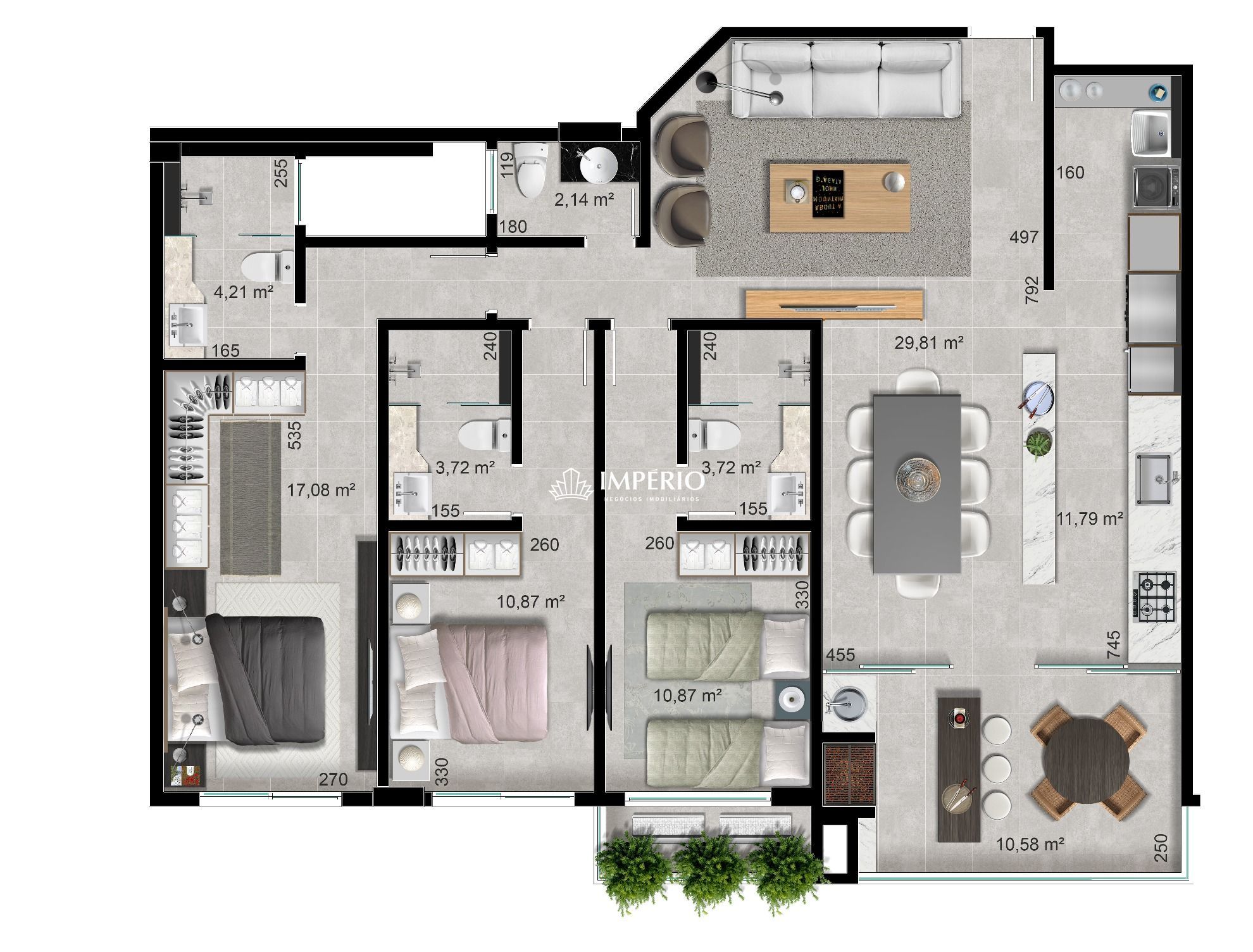 3 suítes espaçosas