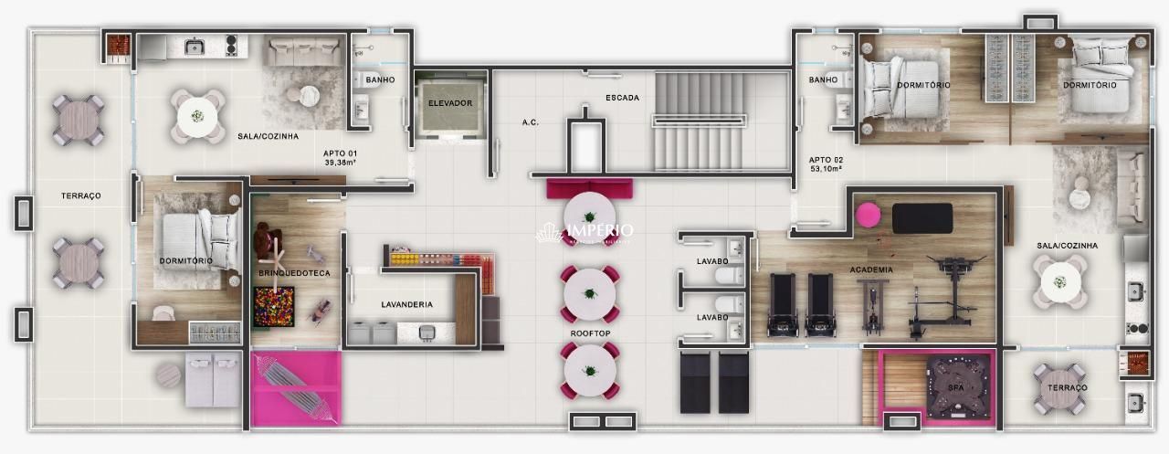 Comodidades:Espera para split, Hidrômetro individual, Academia, Elevador, Playground, Hall de entrada, Carregador veicular, Acesso para banhistas.