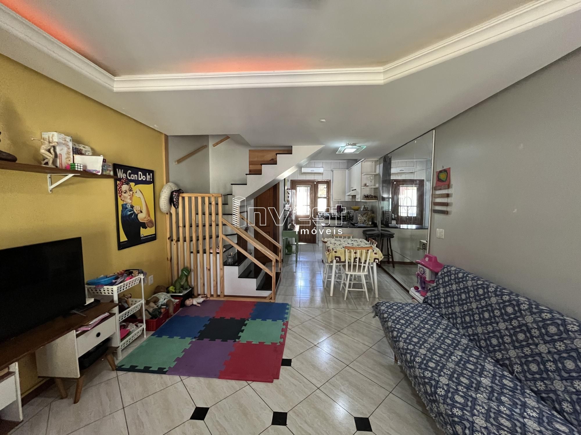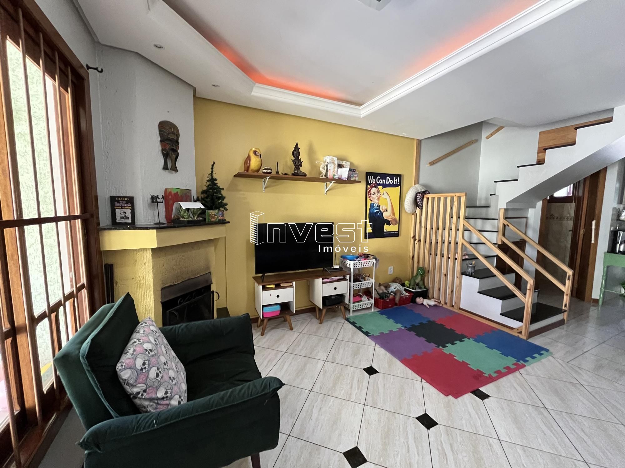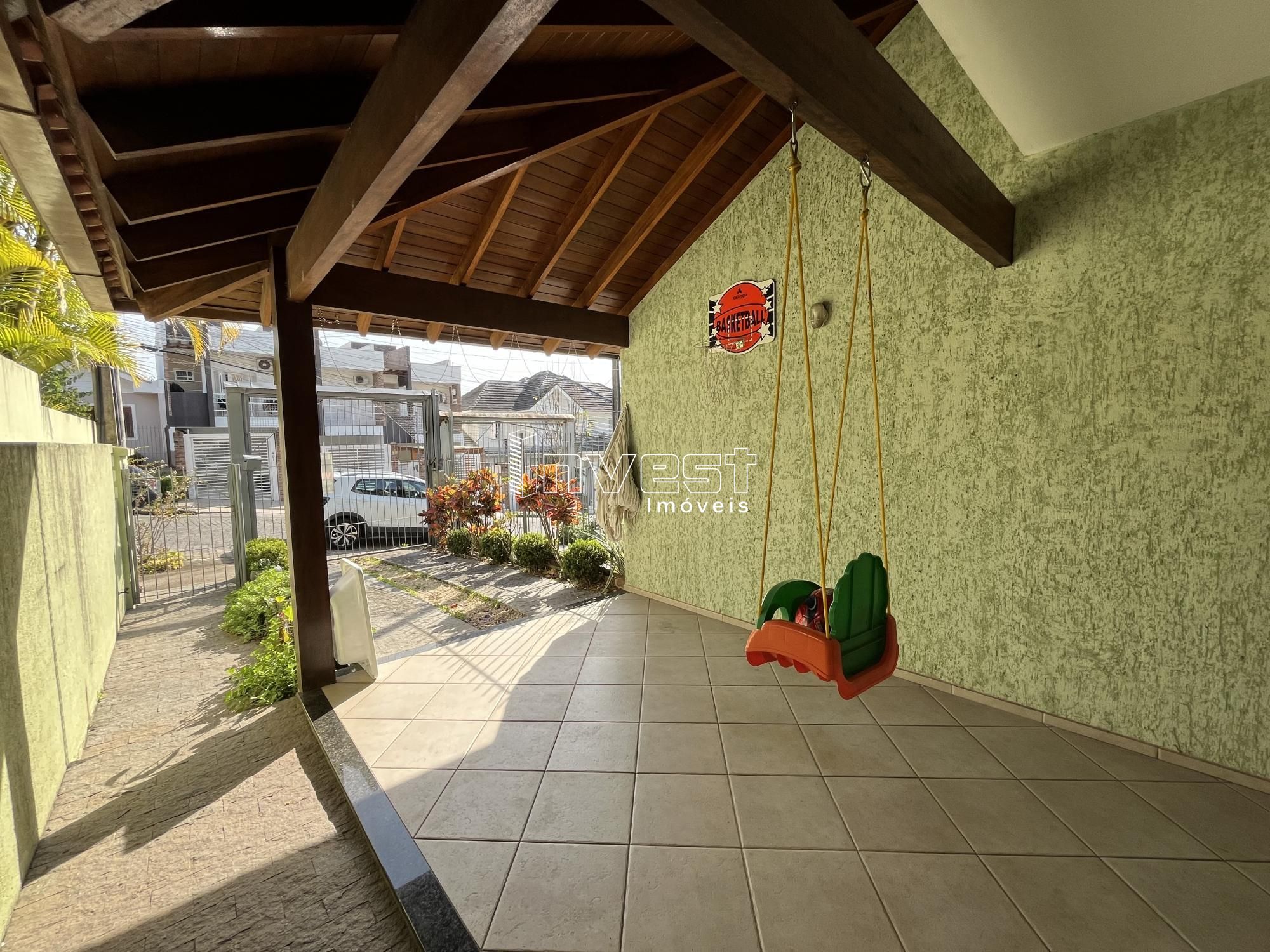 Duplex semimobiliado com pátio frente e fundos com piscina, localizado próximo ao centro com 97,66m2 de área privativa, composto de 02 dormitórios sendo um com sacada, sala de estar e jantar com lareira, cozinha, lavanderia, churrasqueira, banheiro social, lavabo e garagem para dois carros.