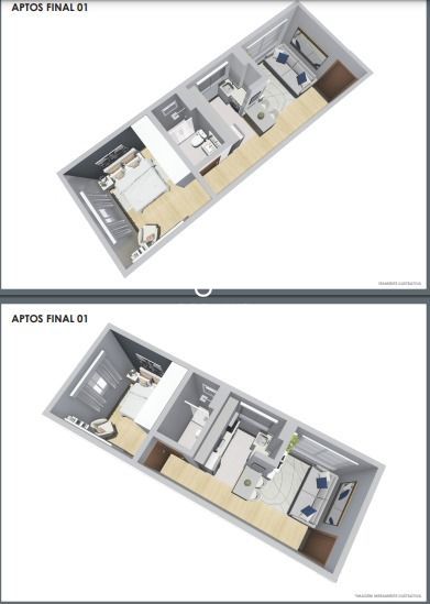 PLANTA TIPO DE 2 APTOS DE 1 DORMITÓRIO E 3 STUDIOS ( 5 PLANTAS POR ANDAR ).