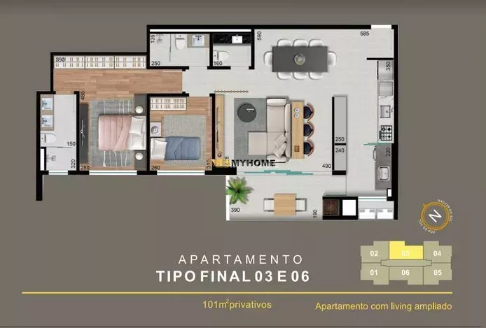 Áreas comuns do condomínio: Salão Gourmet com churrasqueira a carvão, Salão de Festas, Espaço fitness, Brinquedoteca, Salão de jogos, Piscina coberta, Lounge, Playground, Quadra poliesportiva, Piscina adulto e infantil.