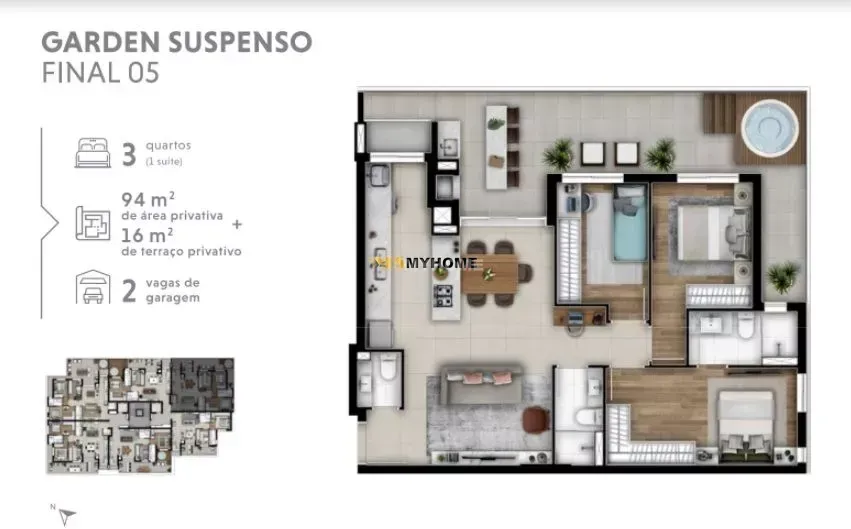 Vem se conectar com esse apartamento em um dos bairros mais charmosos de Curitiba 3 quartos com 1 suíte. Área privativa de 94m² + 16m² de terraço2 vagas de garagem com depósito individual; Cozinha em conceito aberto integrando sala de jantar e estar; Terraço espaçoso com churrasqueira a carvão e Infraestrutura para SPA