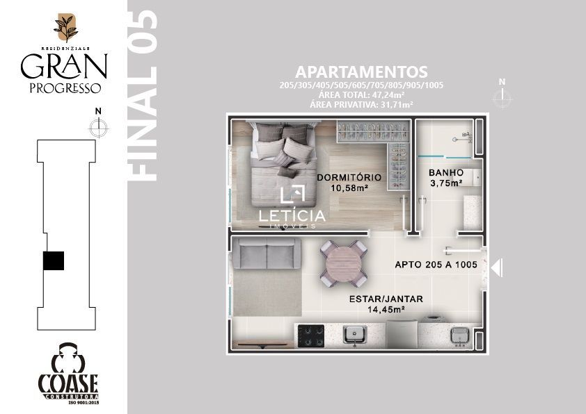 Apartamento com 1 Dormitórios à venda, 32 m² por R$ 194.760,00