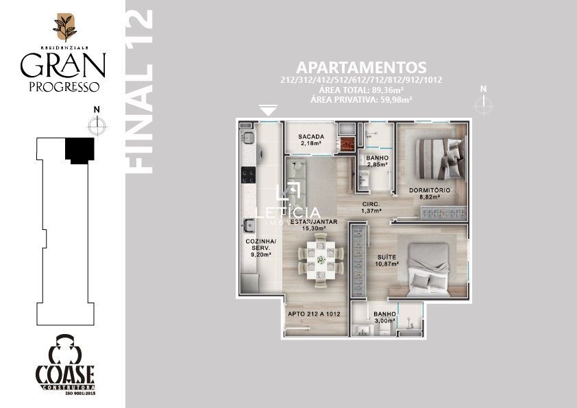 O Residenziale Gran Progresso será construído na Faixa Velha, no centrão de Camobi, ao lado da Floricultura Granja Progresso. Área de laser com: rooftop com 3 spas, salão de festas, fire place, solarium e coworking em cada torre, além de espaço pet, espaço kids, vaga com carregamento elétrico no térreo e placas energia solar para área de uso comum. Boxes de garagem vendidos separadamente.