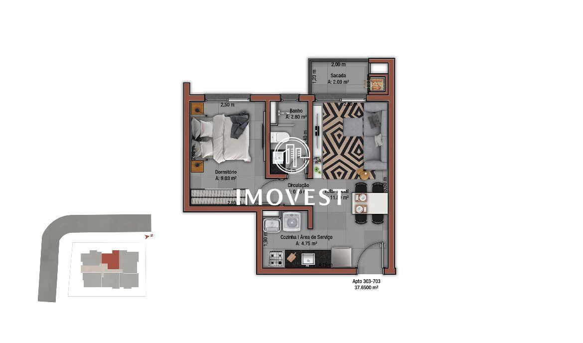 Apartamento com 1 Dormitórios à venda, 38 m² por R$ 296.000,00