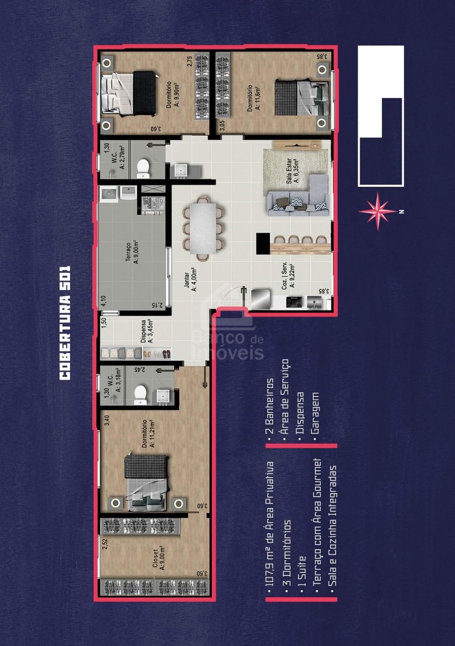 Apartamento com 3 Dormitórios à venda, 108 m² por R$ 850.000,00
