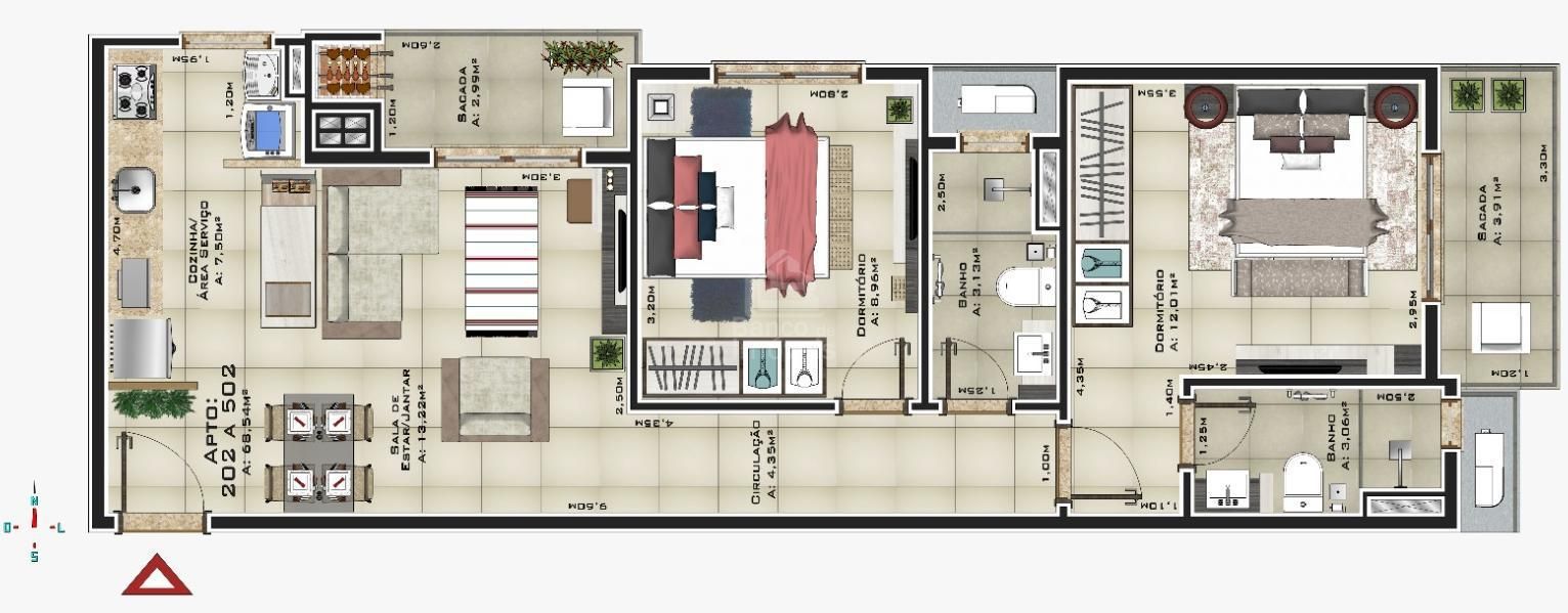 Apartamento com 2 Dormitórios à venda, 69 m² por R$ 460.000,00