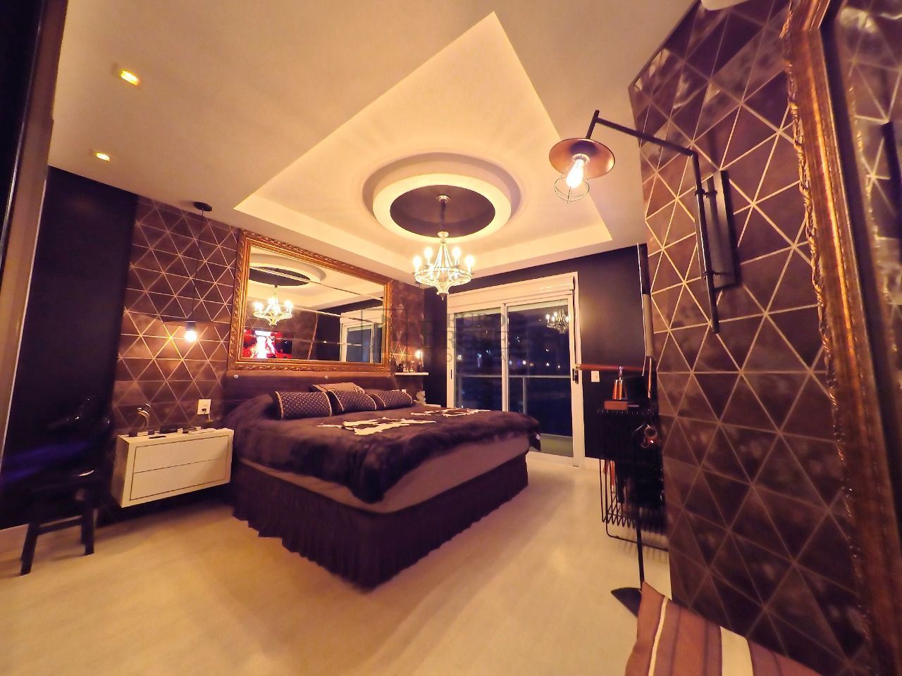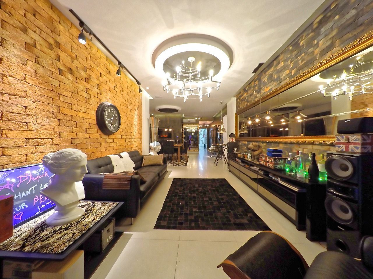 Apartamento contemporâneo, estilo Manhattan, visual noturno tipo New York, industrial e clássico.