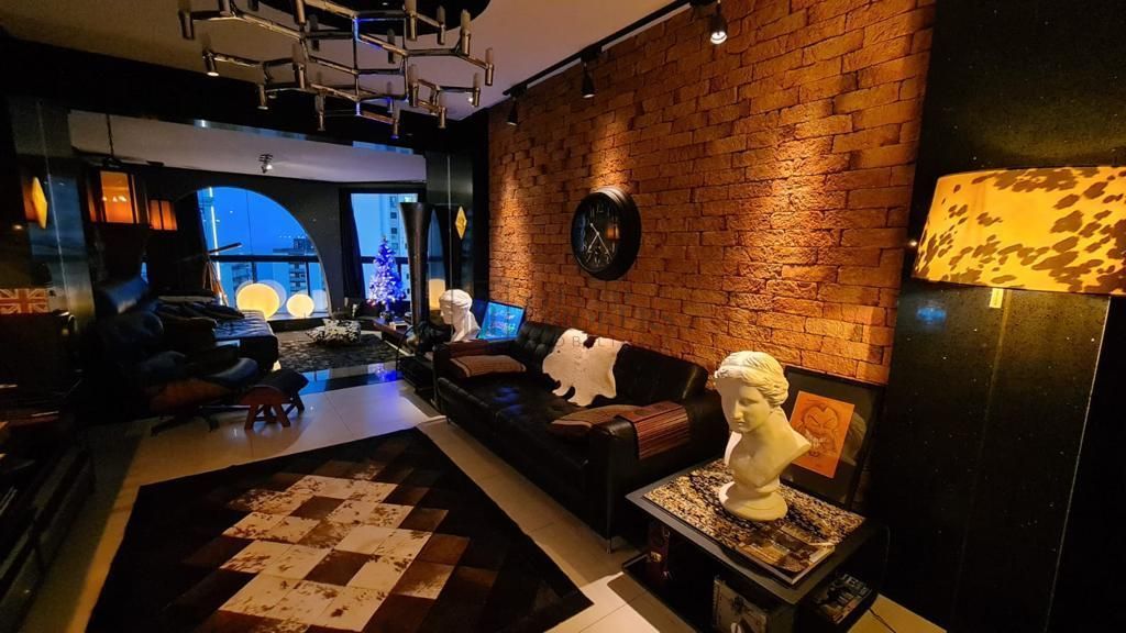 Apartamento contemporâneo, estilo Manhattan, visual noturno tipo New York, industrial e clássico. Apartamento com 3 suítes em frente ao shopping Atlantico no Centro de Balneário Camboriú. Primeira suíte com ar condicionado quente/frio, cama king, frigobar, hidro, sacada aberta. Segunda suíte com ar condicionado, cama casal, estilo parisiense e utilizada diariamente como home office. Terceira suíte temática com ar condicionado, cenas de cinema e cama queen. Sala de jantar, sala intermediária (namoradeira) e den (sala íntima da família), cozinha, área de serviço e dependência empregada. 02 vagas de garagens (lado a lado). Condomínio com salão de festas, piscina aquecida, piscina natação, piscina infantil, sauna úmida com spa (hidro), espaço gym, brinquedoteca, churrasqueira ao ar livre e cinema tela projetada. Ficam todos os eletrodomésticos, o decor e utensílios fazem parte do planejamento total, móveis diferenciados, mesa de demolição real com madeiras de 100 anos, luminária Brookliyn Troy de ferro fundido New York, lareira ecológica a álcool, tv 72 polegadas led 4k, todas as luminárias da sala dimerizadas, louças oxford preto e branco, cristais, banheiros estilo alemão Bauhaus, funcionais. Retira apenas pequenos objetos pessoais. Gostou do imóvel? Entre em contato: (47) 99290-0795