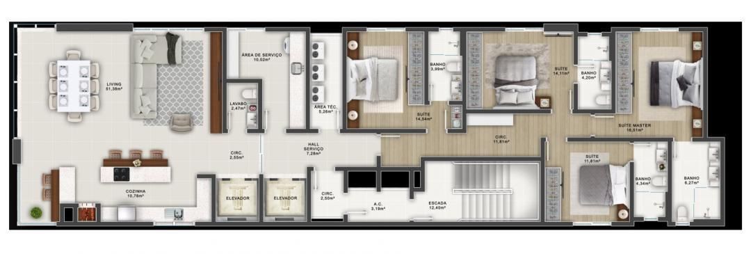 204 metros de área útil