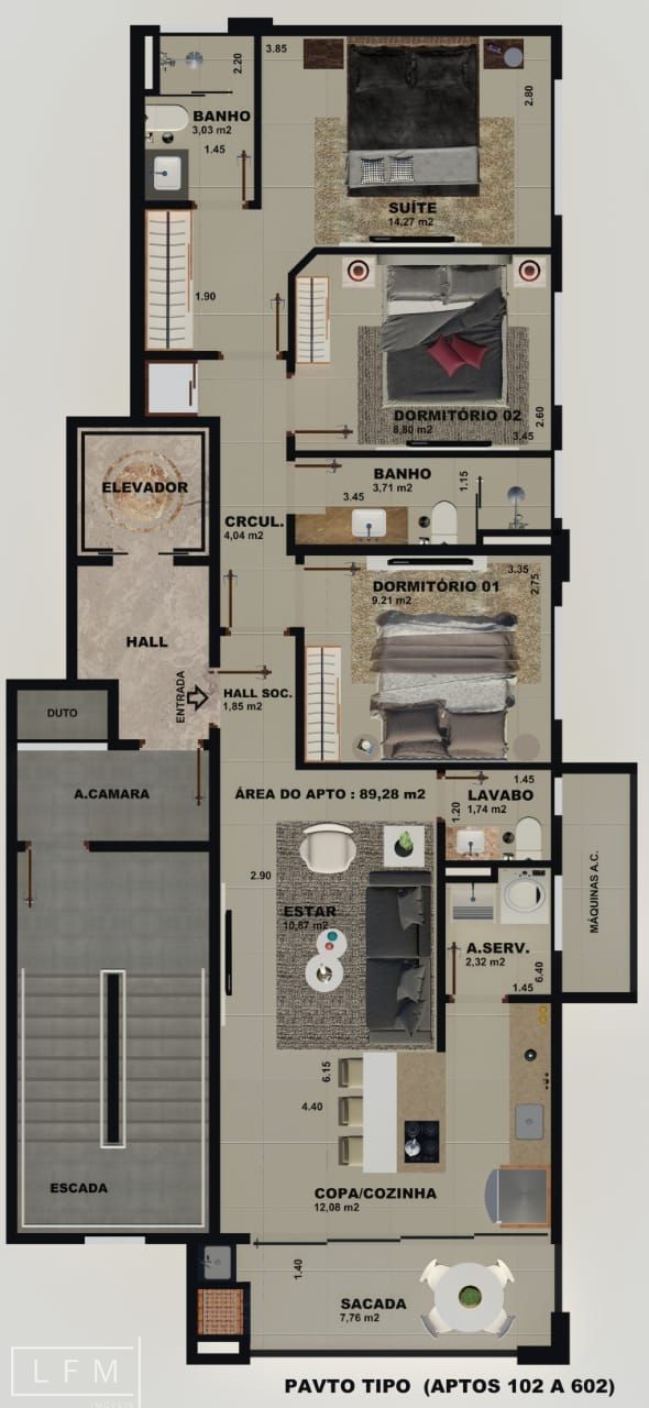 Cada apartamento composto por: