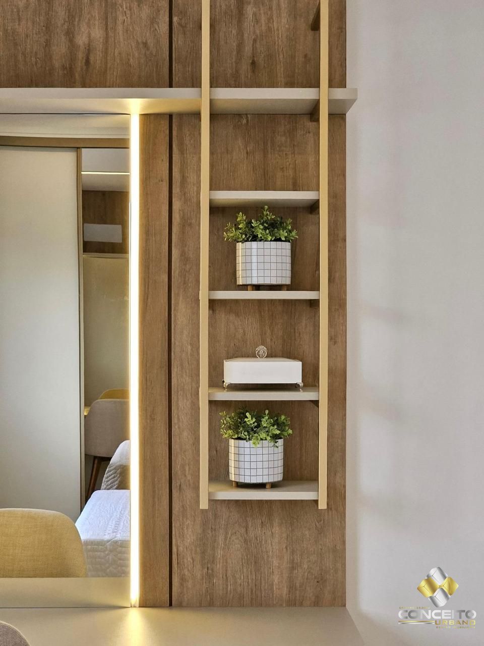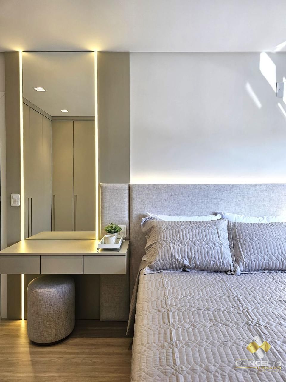 Piso em porcelanato e laminado na área íntima