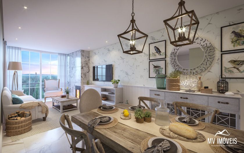 Apartamento de 68 à 106 metros quadrados, distribuídos em living social integrado a cozinha e área íntima separada.