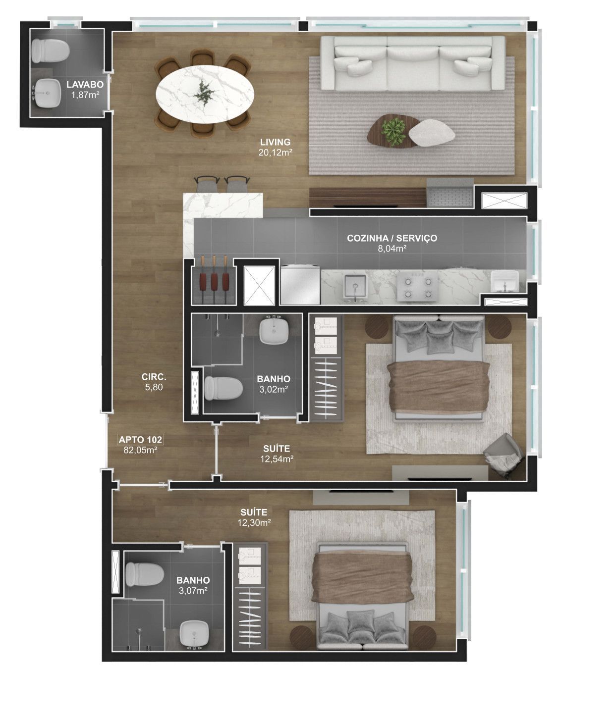 Apartamento com 2 Dormitórios à venda, 82 m² por R$ 2.234.928,00