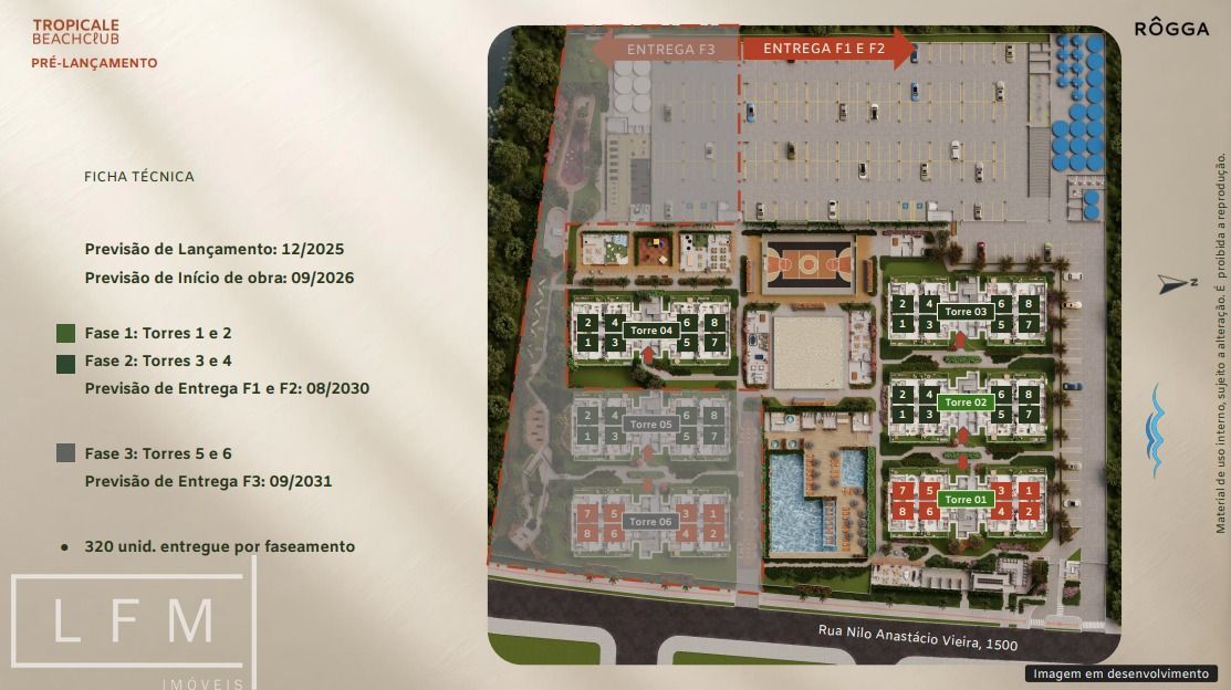 TROPICALE BEACH CLUB O novo lançamento da Rôgga em Penha! Um empreendimento pensado para quem busca se desconectar da vida urbana e viver a experiência de “uma floresta tropical na praia”. Rua Nilo Anastácio Vieira, nº 1500 Previsão de Início de obra: 09/2026 ️ Principais diferenciais: - 6 torres com 20 pavimentos - 960 unidades (8 apartamentos por andar) - Fechadura eletrônica e puxador em inox na porta de entrada - Porcelanato na cozinha e bwc - Laminado nos dormitórios e sala (exceto giardino) - Rodapés em poliestireno (exceto na sacada e banheiro) - Forro de gesso e sanitário com acionamento duplo no banheiro - Infraestrutura para ar condicionado para dormitórios e sala (entregue ponto elétrico e dreno) - ver descrição memorial descritivo - 2 elevadores por torre - Possibilidade de vista mar a partir do 13º andar - Mais de 45 itens de lazer, distribuídos em 9.529,29 m² — a maior área de lazer já lançada pela Rôgga! - Piscina com 25m de comprimento e Pista de caminhada com 700m - Edifício garagem com 5 pavimentos (2 com infra para carregamento de carro elétrico) - Parceria Seazone - Conceito shortstay, ampliando o potencial de rentabilidade para investidores