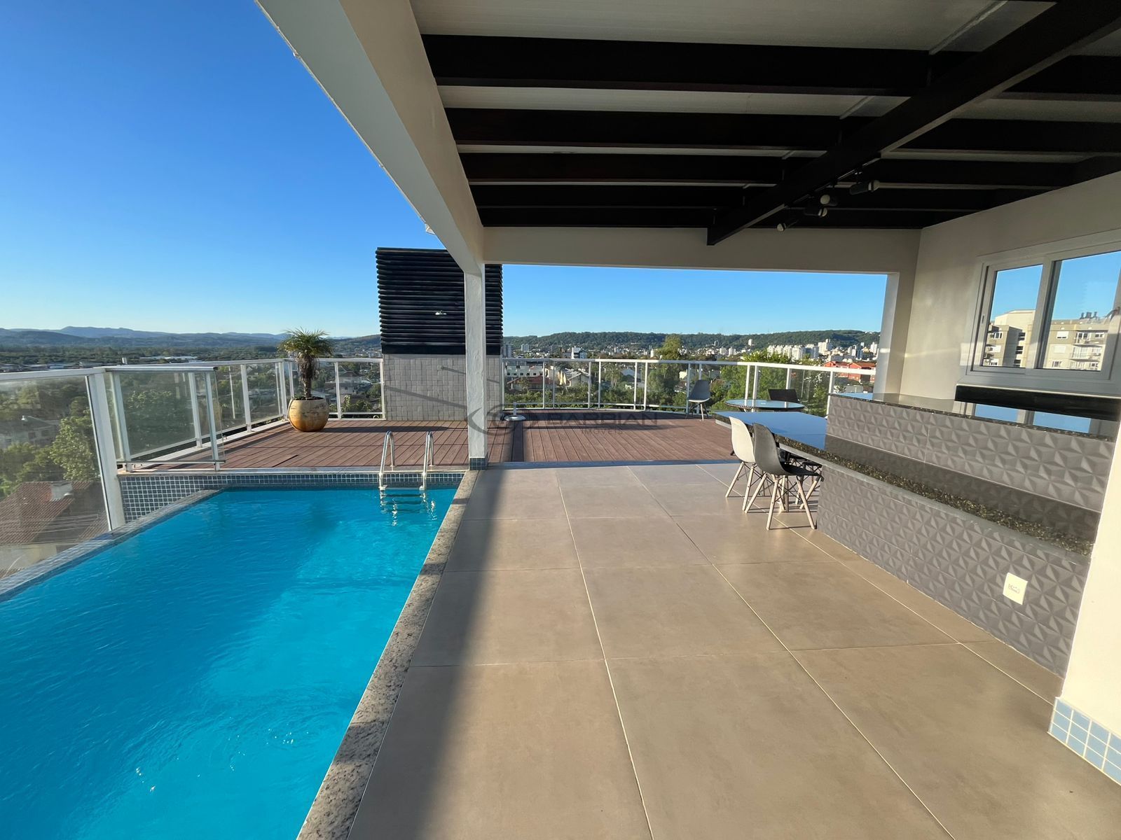Prédio com 2 salões de festas no terraço, piscina e elevador.