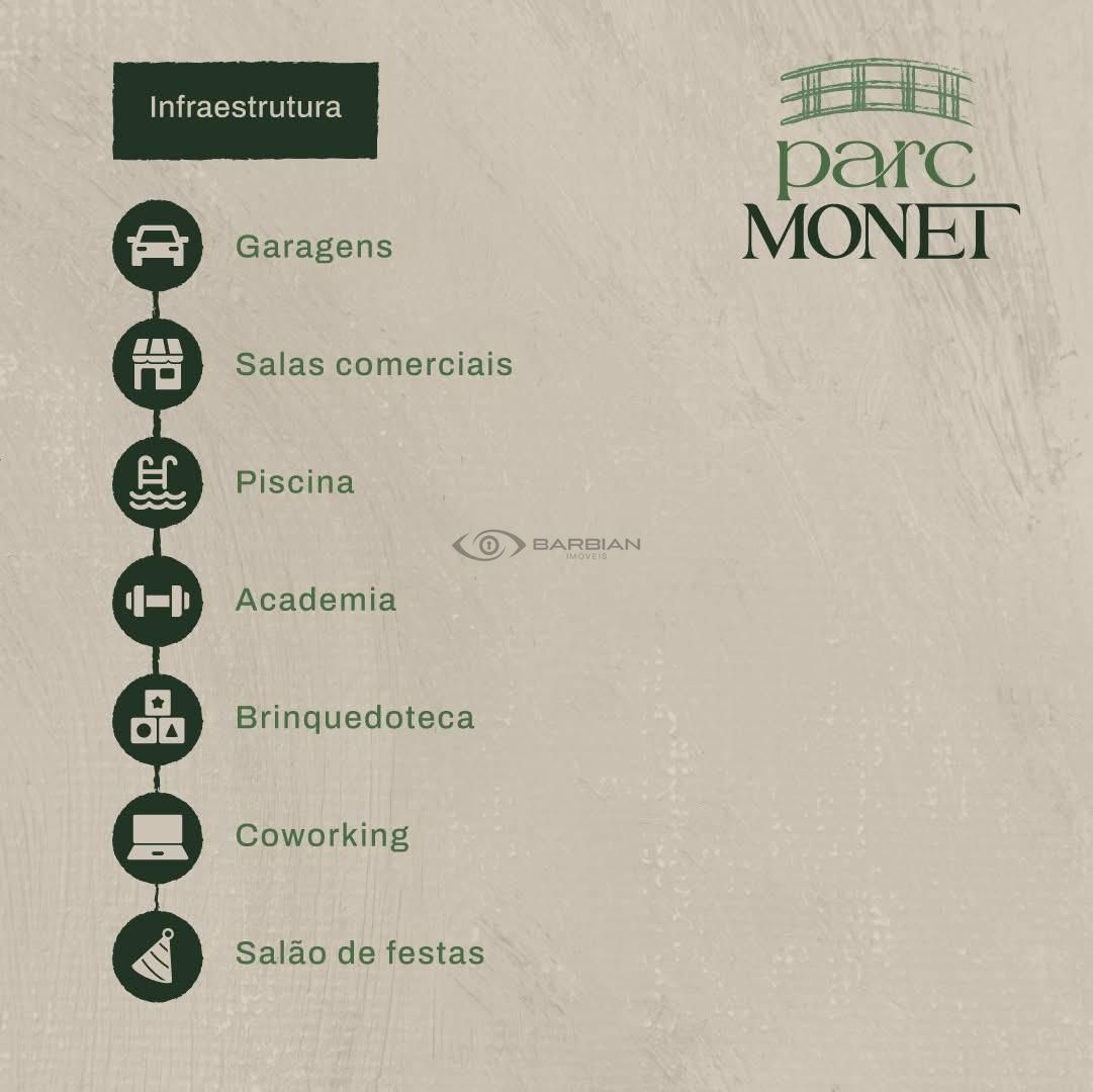 PARC MONET - COMPRE NA PLANTA - RUA GALVÃO COSTA, SANTA CRUZ DO SUL Uma verdadeira obra prima em construção! Com uma condição incrível de pagamento: 50% de entrada, podendo parcelar em até 60 vezes E o restante, os outros 50% você paga quando receber as chaves do apartamento. Endereço: Rua Galvão Costa número 100, Santa Cruz do Sul. -Piscina; -Academia; -Brinquedoteca; -Coworking; -Salão de festas; -Box condominial com tomada para carro elétrico; -Infraestrutura para portaria virtual; -Reaproveitamento da água da chuva; -Espera para placas solares. Material piso: Sala, cozinha, banheiros e sacada: Piso porcelanato Portobello, Eliane, Portinari ou similar; Estar / Jantar: Piso cimentado com colocação de piso de porcelanato e ou laminado; Dormitórios: Piso cimentado preparado para porcelanato, piso cerâmico ou laminado. (cliente poderá escolher o piso de sua preferência) Quantidade de andares: 16 Unidades residenciais: 57 unidades de 1 e 2 dormitórios com suíte Área total do terreno: 1.533,13 m2 Prédio com 3 lojas comerciais Valores sujeitos a alteração. Consulte tabela de vendas!