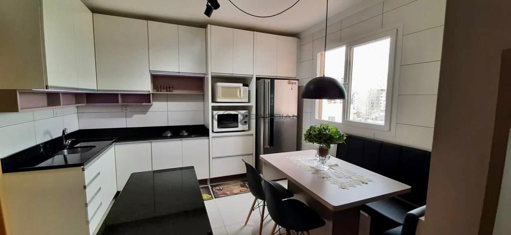 Apto com 126,97m² sendo 99,06m² privativos, possui 3 dormitórios (uma suíte), sala de estar, sala de jantar, área de serviço (separada), 2 banheiros, churrasqueira na cozinha, ampla sacada com bela vista e dois box de estacionamento.