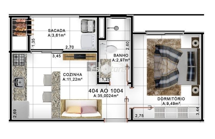 Apartamento com 1 Dormitórios à venda, 35 m² por R$ 280.000,00