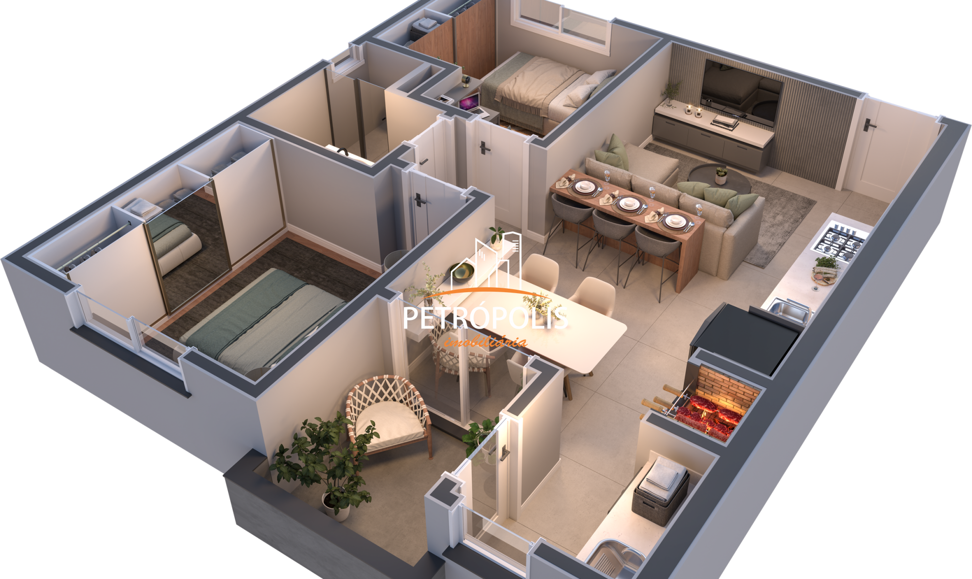 A área social é bem confortável, com churrasqueiras por alimentação a gás, para maior praticidade.
