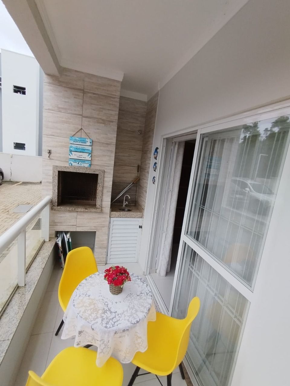 Apartamento térreo 101, mobiliado, com 2 dormitórios, sendo 1 suite, localizado no Bairro Itacolomi a 850 metros da praia, com 1 vaga de garagem descoberta, varanda com churrasqueira a carvão.