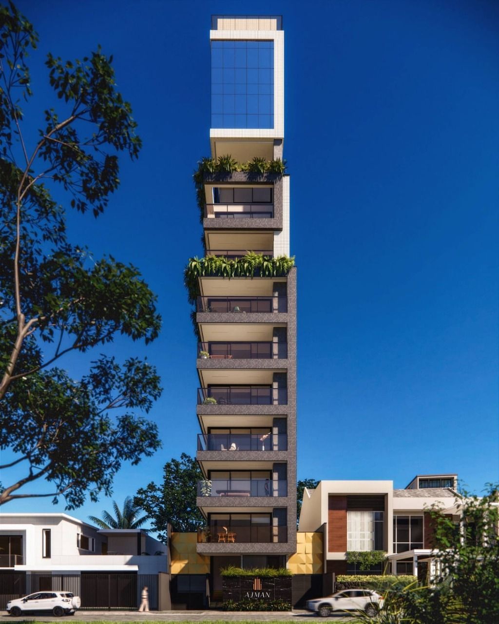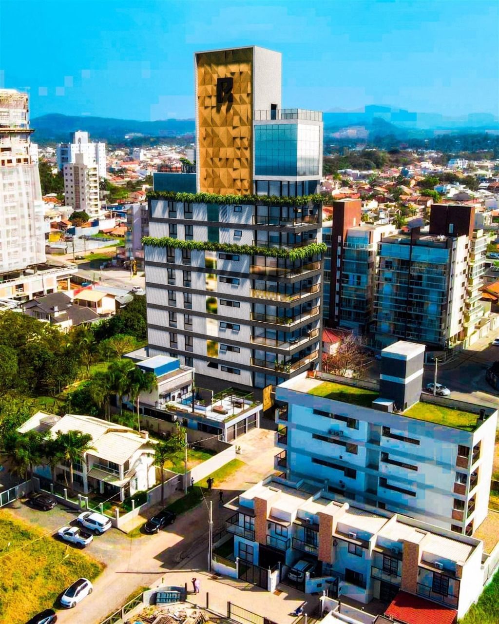 UNIDADE Living Integrado Amplo pé direito Lavabo Área de Serviço Espera para split Acabamento em gesso Fechadura com senha na porta de entrada Interfone Circuito Tv Vista Panorâmica EMPREENDIMENTO Tomadas Carro Elétrico Academia Hall de entrada decorado e mobiliado Medidores de água, luz e gás individuais Rooftop Espaço gourmet Interfone Piscina