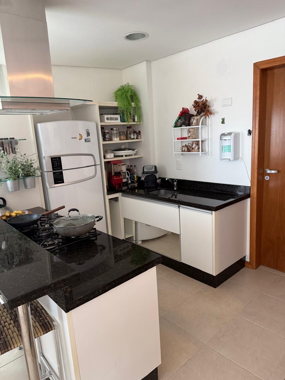 Cozinha integrada com churrasqueira;