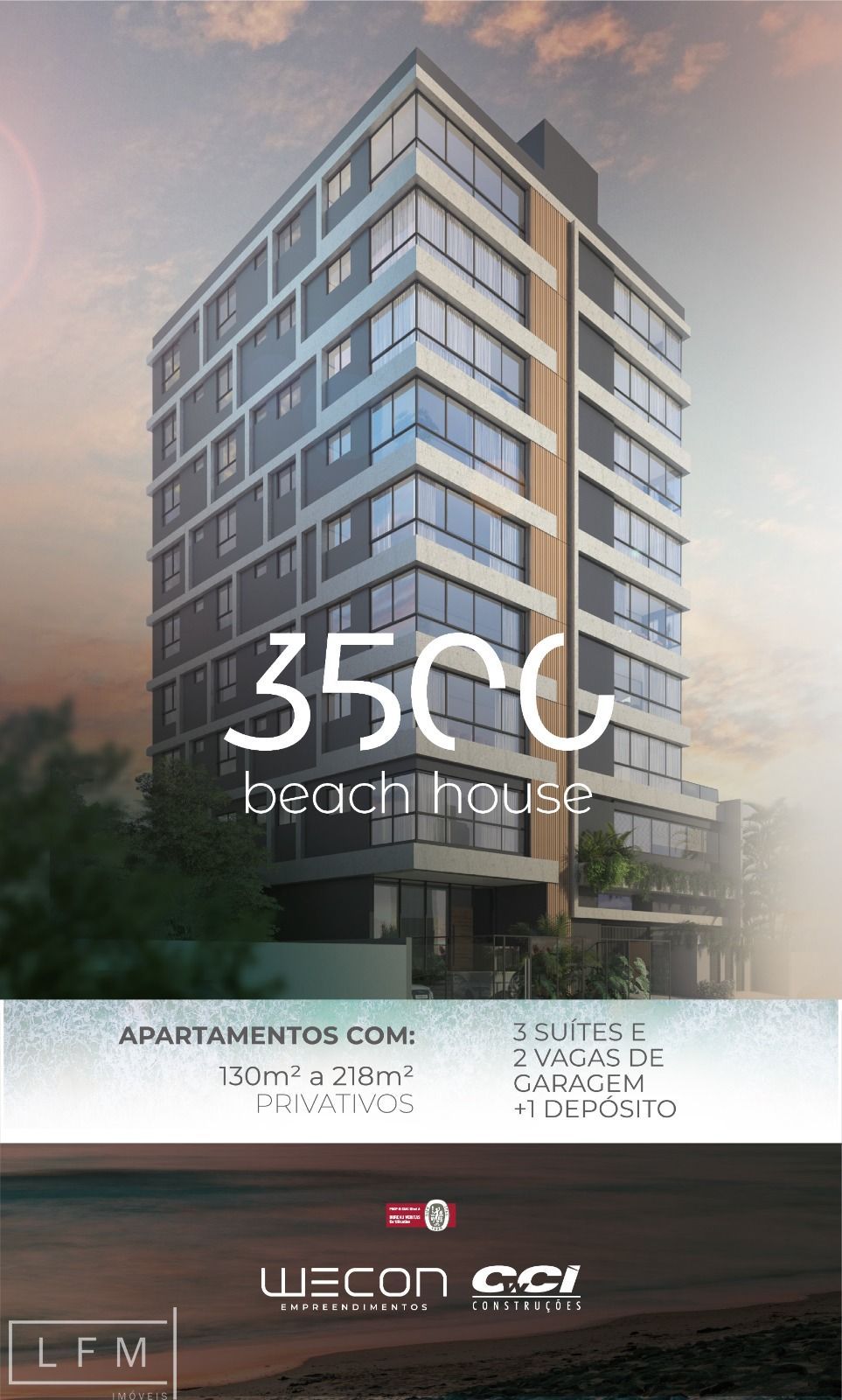 Apartamento quadra mar, poucos passos do mar. Todos os ambientes possuem iluminação e ventilação natural. 2 vagas de garagem e1 depósito por apartamento. Infraestrutura para carros elétricos. Elevador social. Lava pés e acesso para banhistas com ducha. Piso vinílico nos quartos e porcelanato nos demais ambientes. Medição de água, luz e gás individuais. Persianas externas blackout, com infraestrutura para automatização. Churrasqueira a carvão integrada à sala de estar Fechadura eletrônica na porta de entrada Conforto térmico e acústico. plantas, TIPO 01, 130,65 metros privativos. TIPO 02, 131,11 metros privativos GIARDINO 01 218 metros privativos GIARDINO 02 172 metros privativos