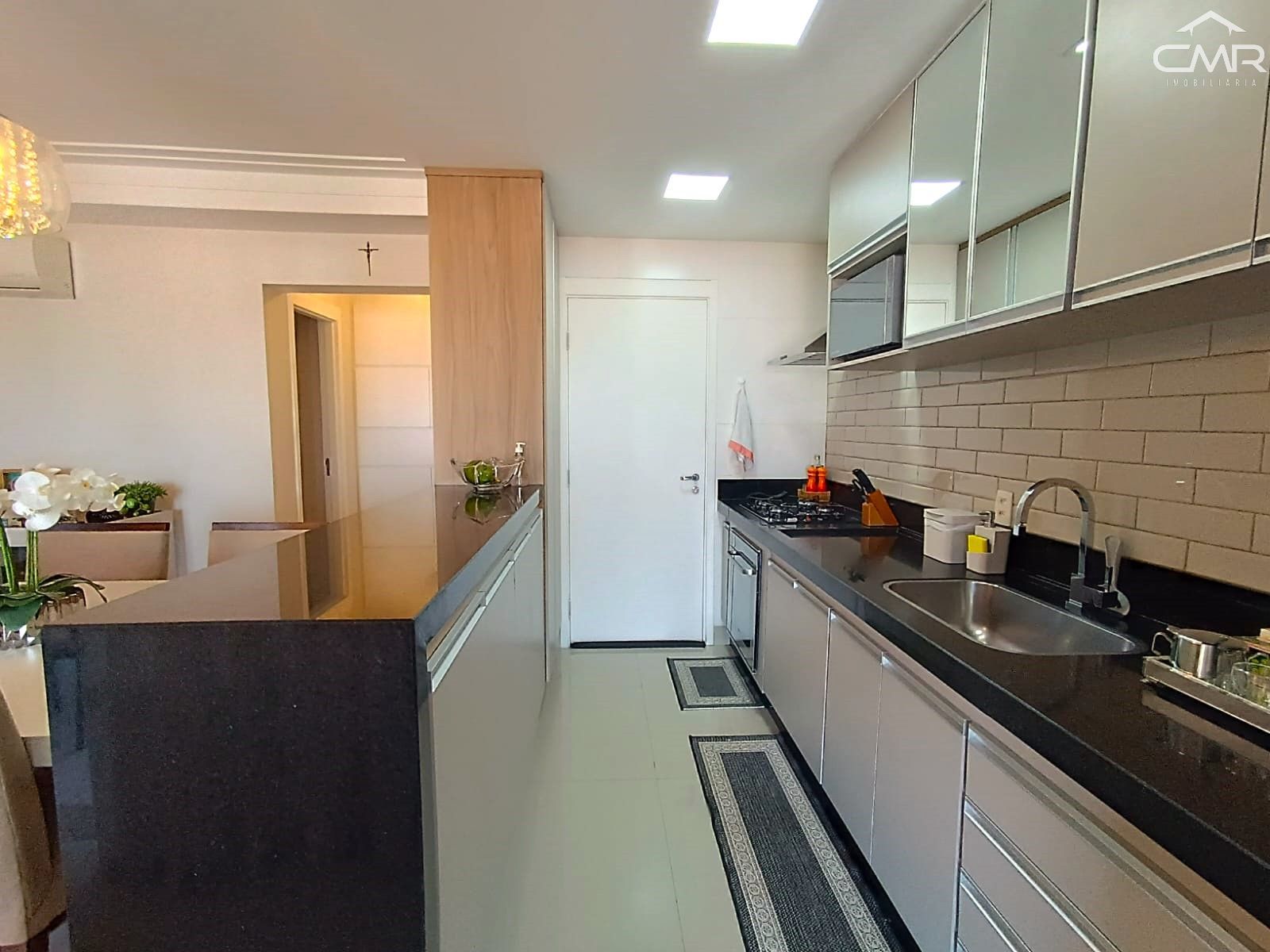 O apartamento mede 97 m² de área útil, situado em andar alto, contendo: sala para 2 ambientes, lavabo, cozinha toda planejada com forno e cooktop, bancada em granito com armários, área de serviço separada com armários, ampla varanda gourmet com churrasqueira, pia, com a melhor vista panorâmica da cidade, 3 dormitórios sendo 1 suíte com box de vidro e gabinete, banheiro social com box de vidro e gabinete e 2 vagas paralelas e cobertas.