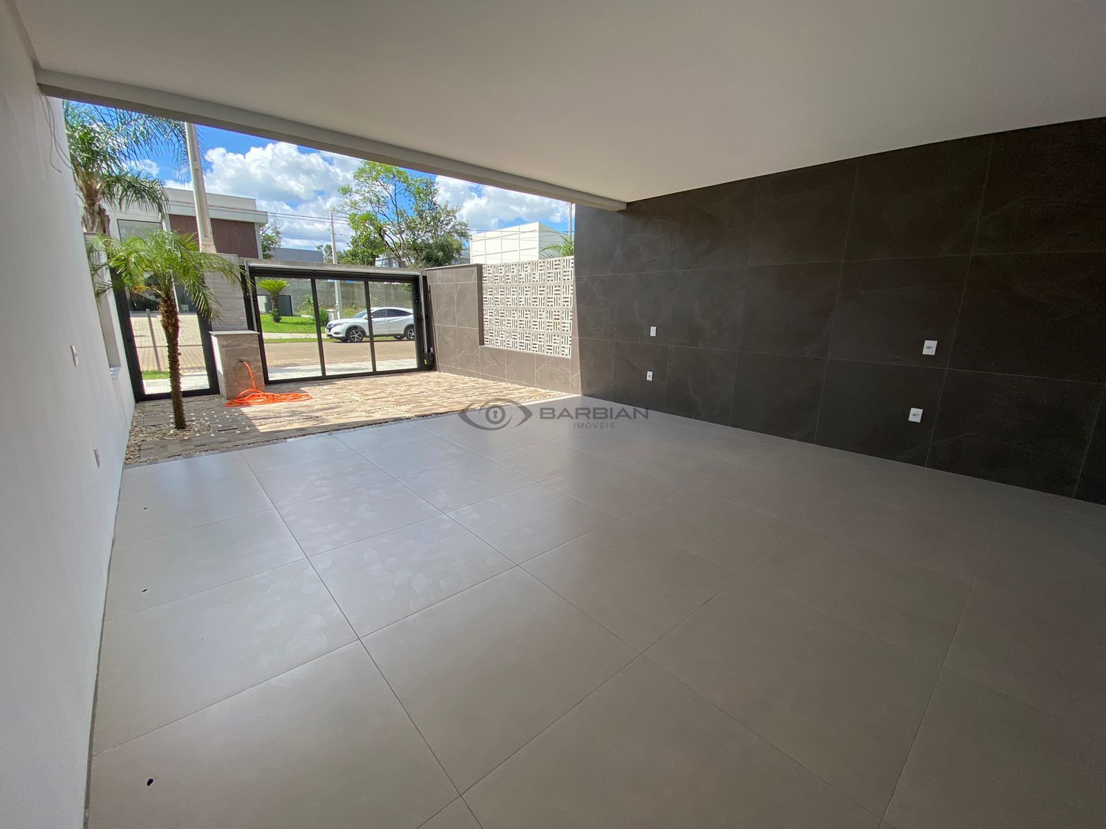 - Garagem coberta para dois veículos, sendo um ao lado do outro