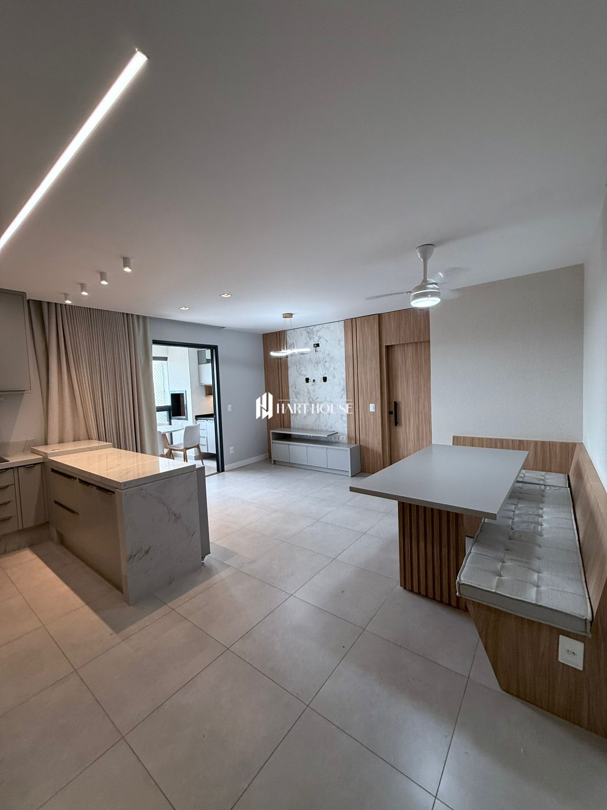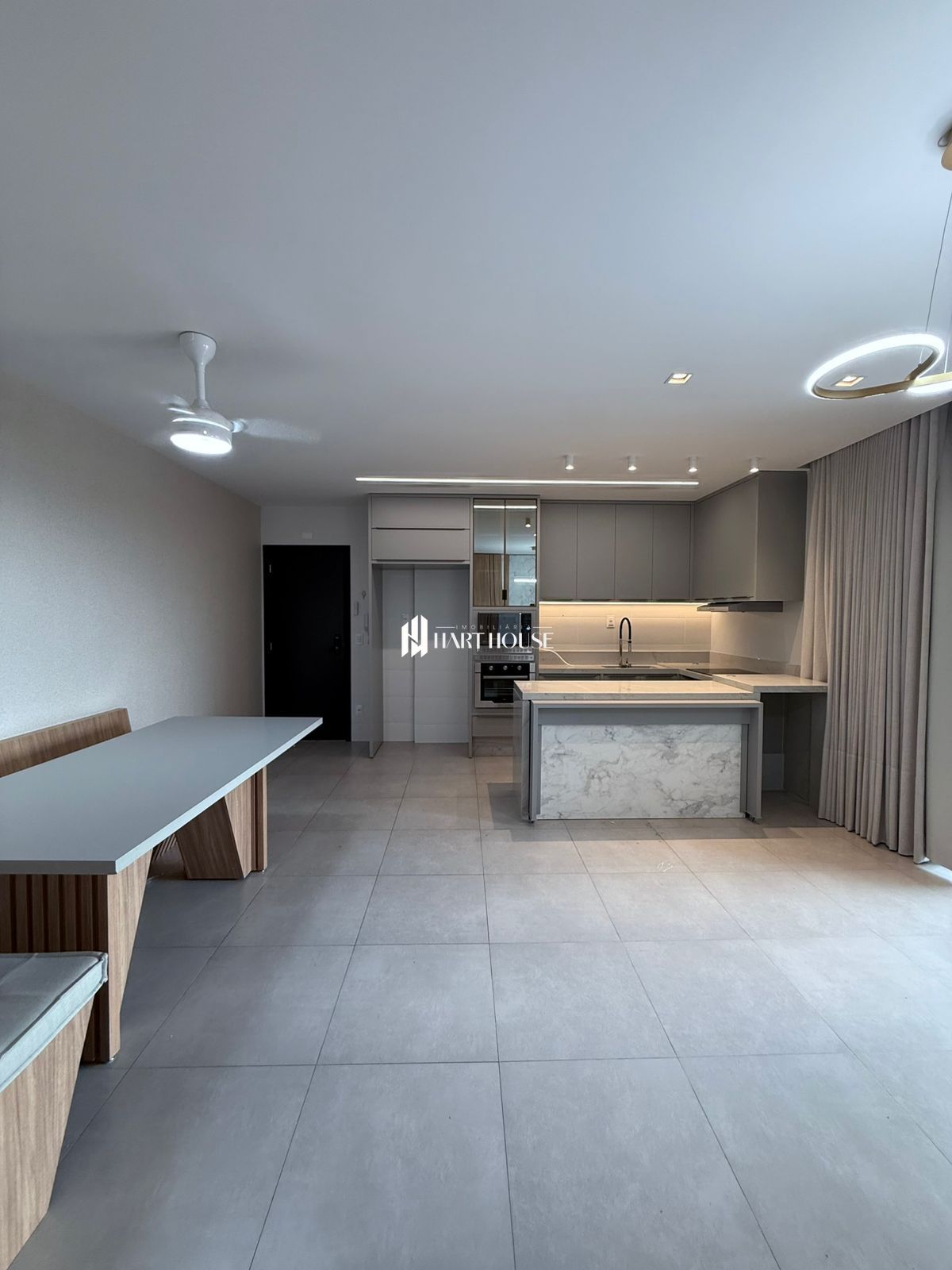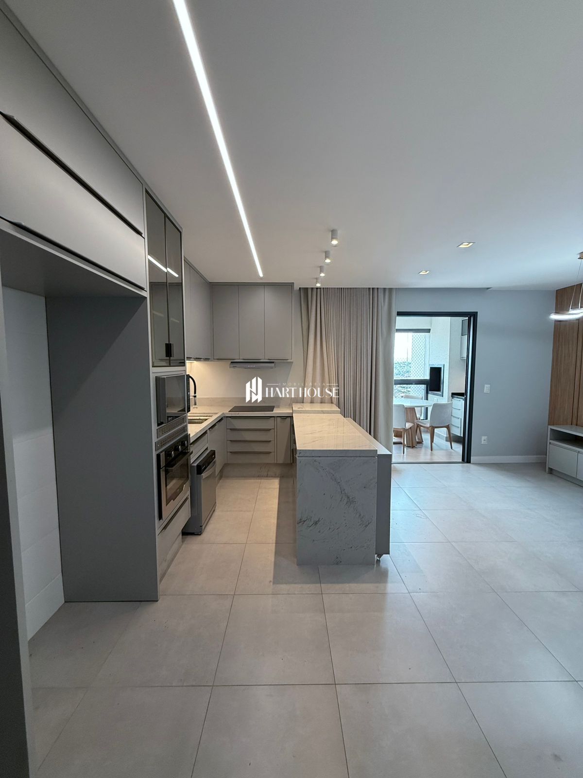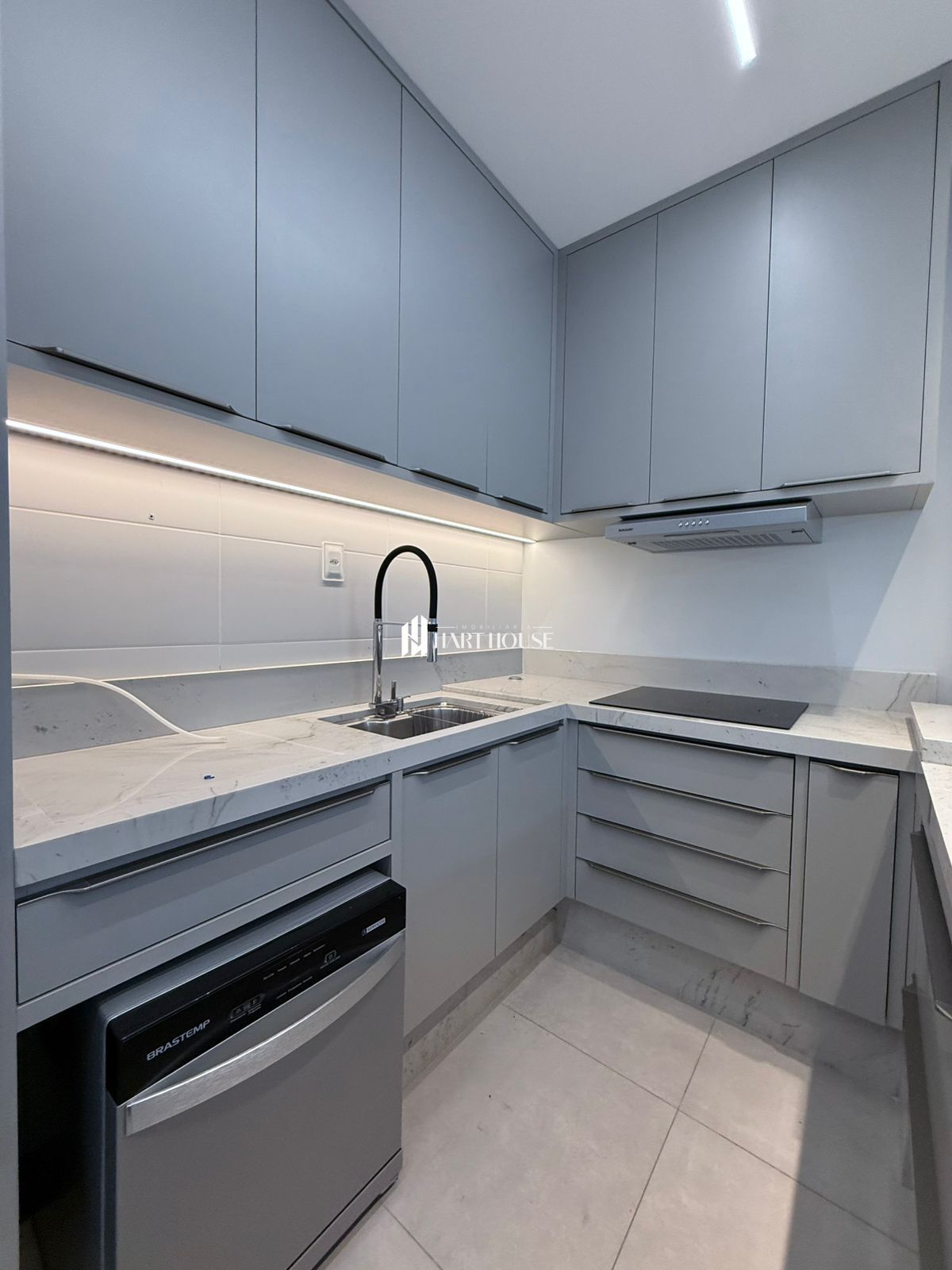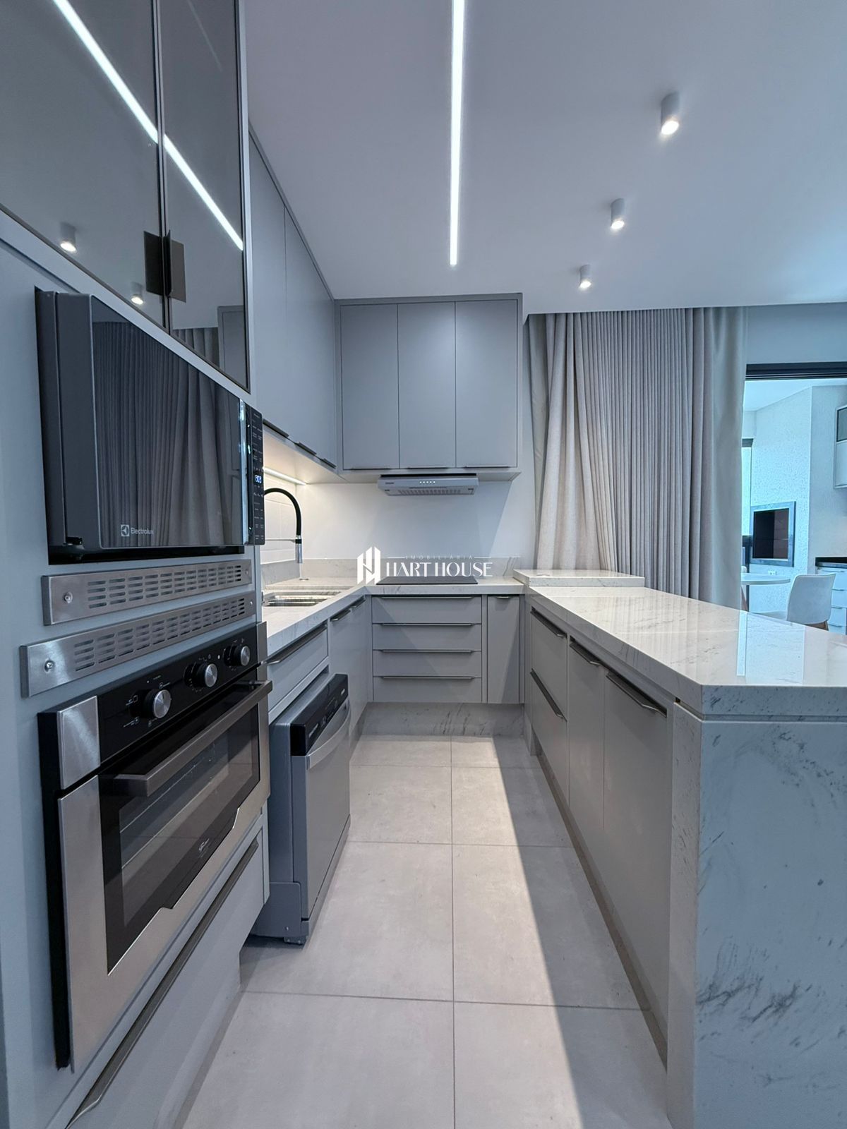 O imóvel conta com armários planejados em todos os ambientes e bancadas em mármore, que garantem elegância e funcionalidade.