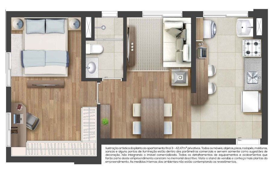 Apartamento 43 TORRE 01, Quarto andar, 42,47 m² de área privativa,