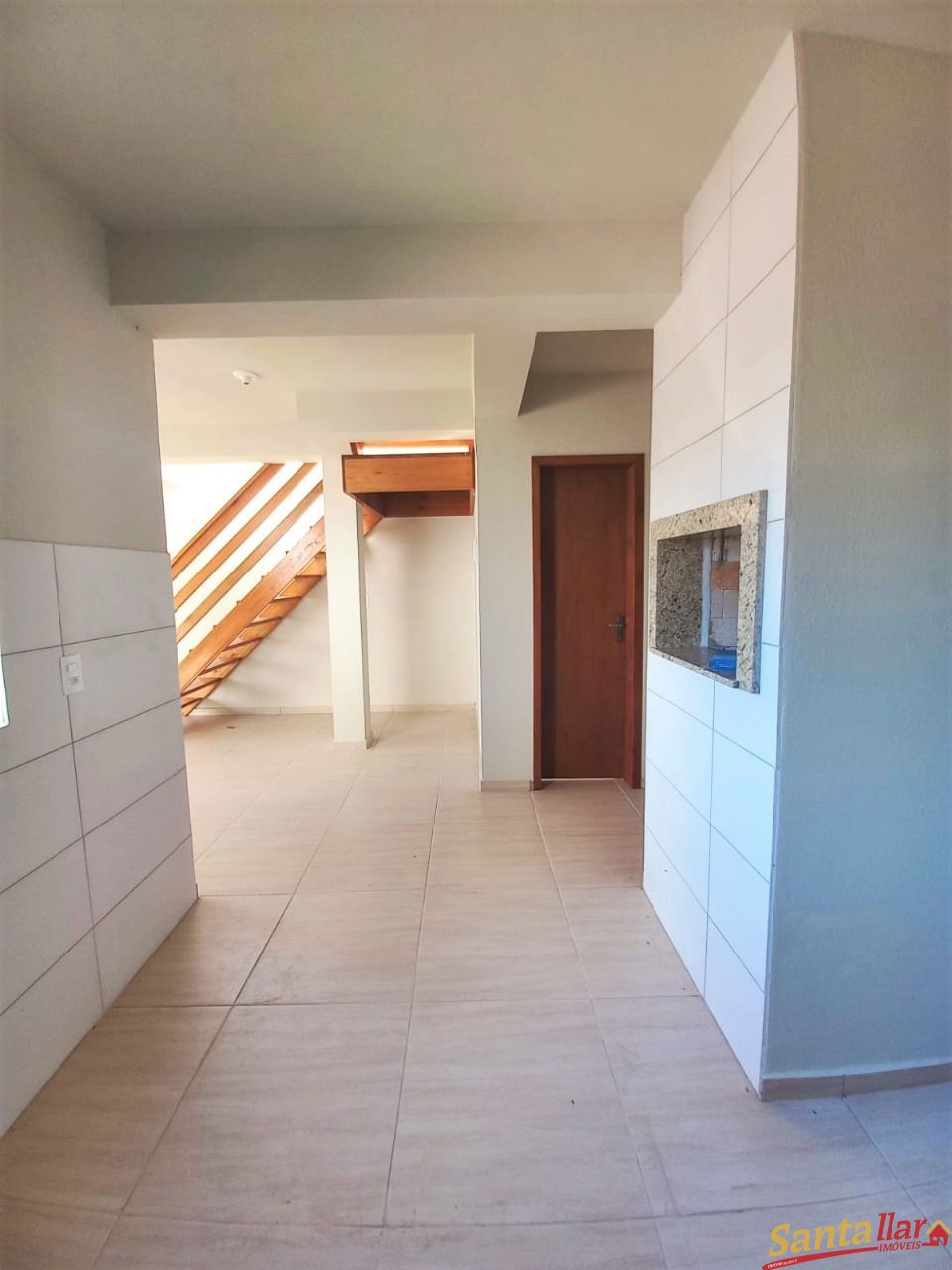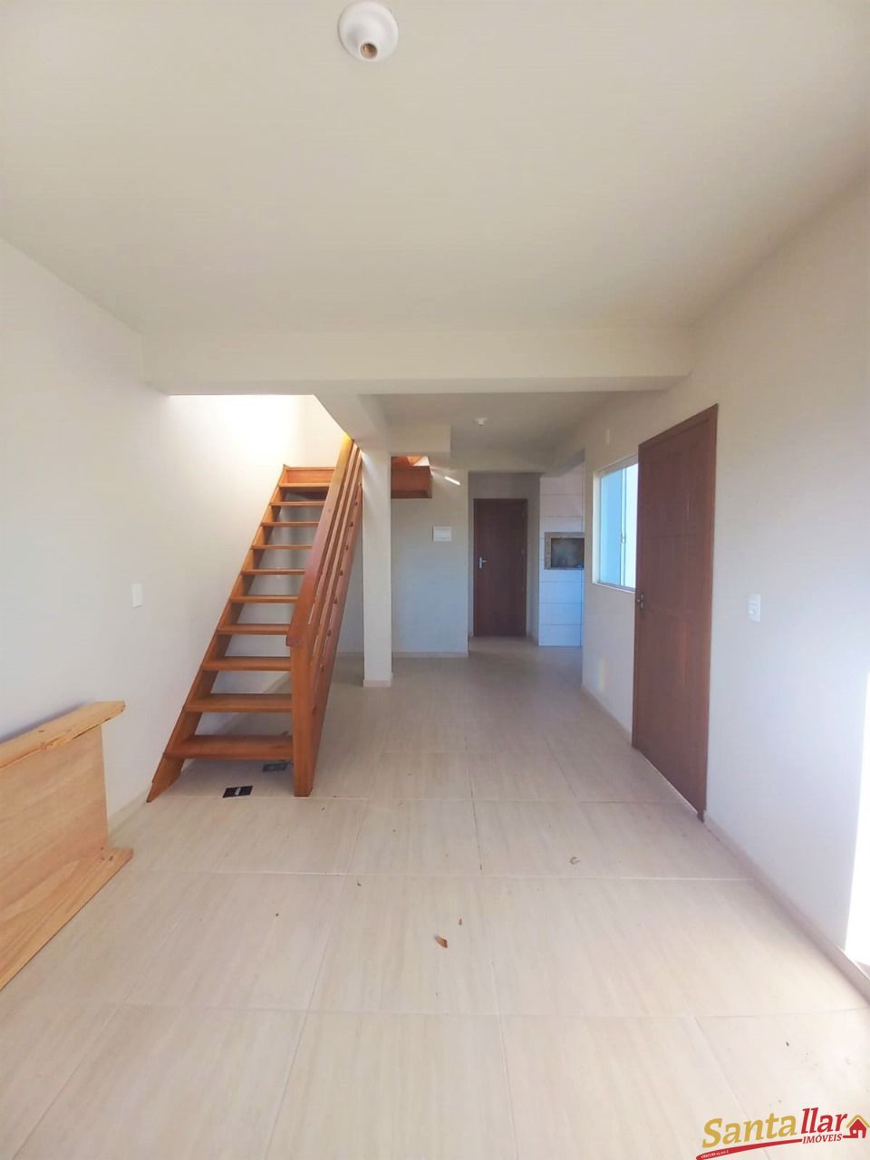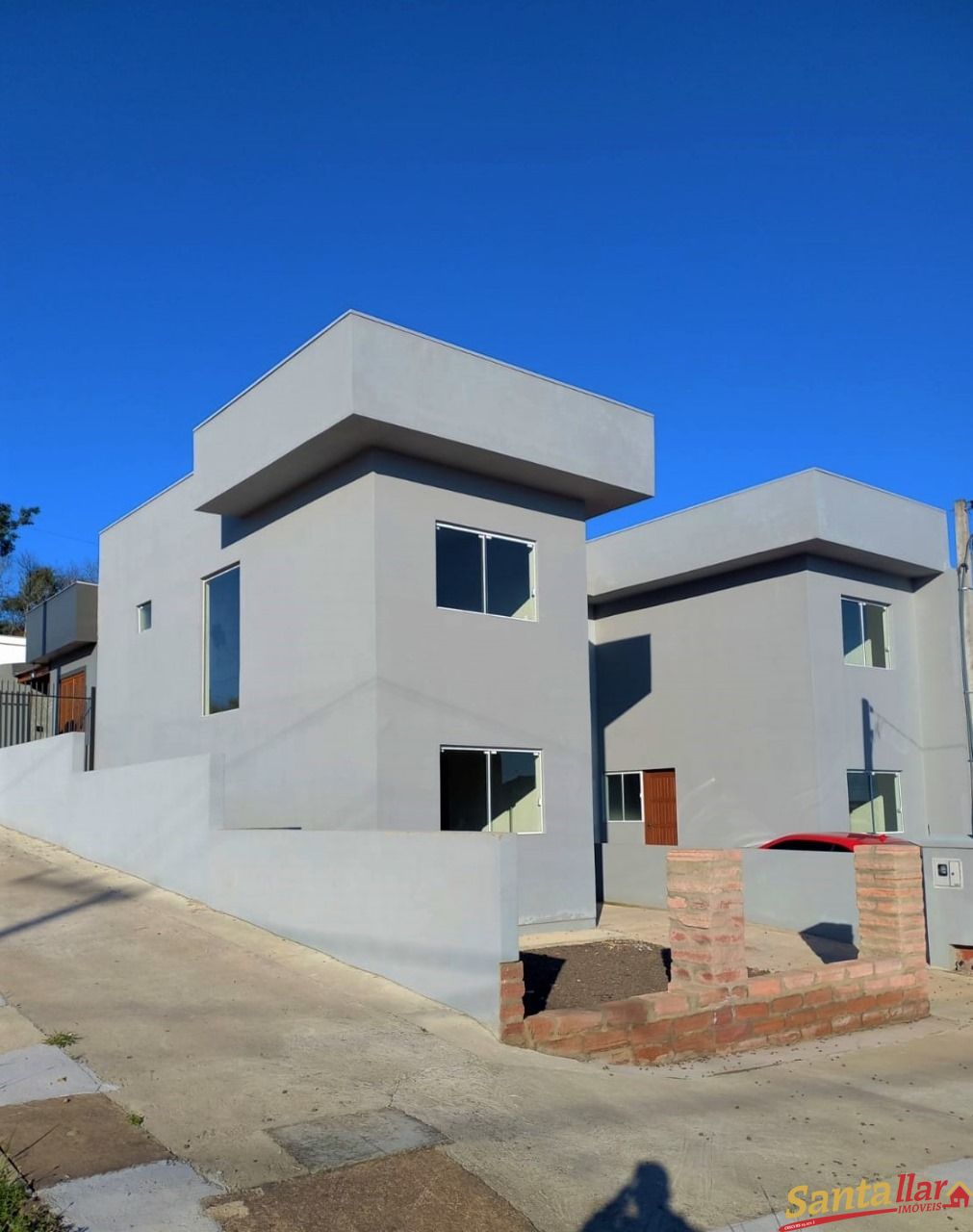 Duplex novo de esquina no Loteamento Nova Santa Cruz II, com sala estar/jantar, cozinha com churrasqueira, lavabo, área de serviço, área destinada a garagem no jardim. No segundo pavimento 2 quartos e 1 banheiro.