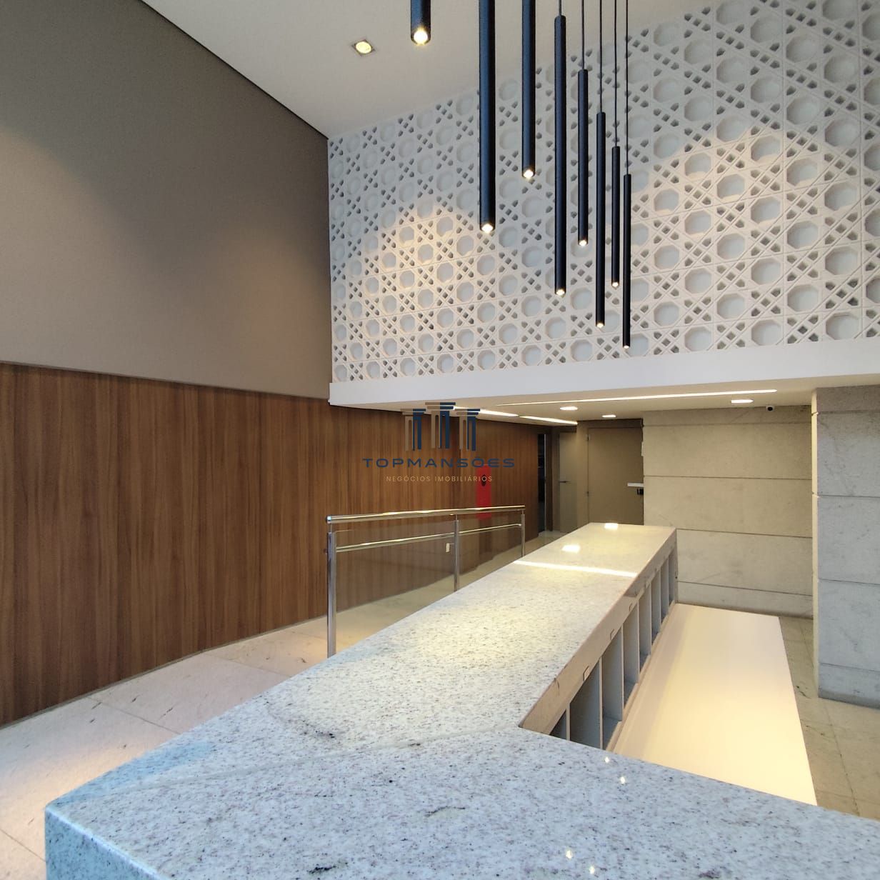 - Cozinha com armários e bancada em granito;