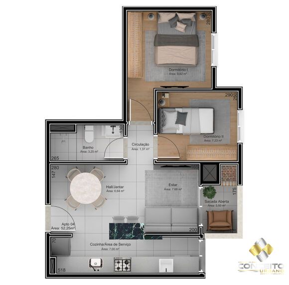 Apartamento com 2 Dormitórios à venda, 52 m² por R$ 350.000,00