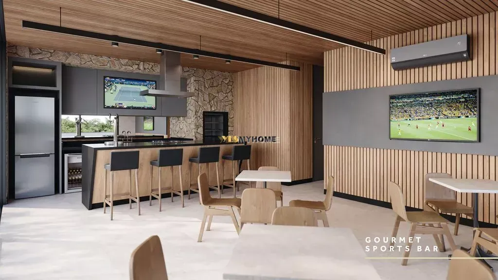 EMPREENDIMENTO: Anfiteatro de Contemplação, 2 salões de festas, 3 gourmet temáticos, Pool bar, Pet Place, Mercado de Conveniências, 2 quadras poliesportivas, 2 quadras de beach tênis, Pista de skate, Quiosque de apoio, Espaço alongamento, Central de delivery, 40 vagas de visitantes, 40 Circulação interna com veículo elétrico, Academia, Brinquedoteca, Elevador, Espaço gourmet, Guarita de segurança, Lounge, Piscina adulta, Piscina infantil, Playground, Sala de Reunião, Sala de jogos, Bicicletário, Hall de entrada decorado e mobiliado, Medidores de água, luz e gás individuais, Piscina, Piscina adulta com borda infinita, Sala de games, Salão de festas, Solarium.