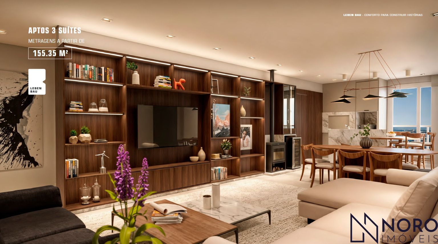O Residencial Lebben Bau é mais que um condomínio de apartamentos, é o prédio com a infraestrutura de lazer mais completa de Santa Maria e região. Empreendimento construído no modelo de gestão SPE (Sociedade de Participação Específica), com 26 andares, com apartamentos de 2 e 3 dormitórios. O principal diferencial é a área comum, com coworking, 2 salões de festas (grande e pequeno), espaço fitness, quadra de futebol, sauna e piscina. O apartamento possui 3 suítes, 155,35 metros quadrados de área privativa e 1 vaga de garagem. Perto de tudo, o Lebben Bau possui absolutamente todos os serviços essenciais a qualquer morador nas do prédio. Sem dúvida uma excelente opção de moradia ou investimento.